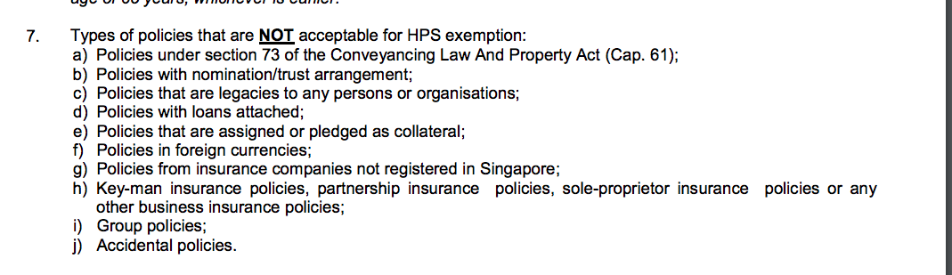 您可以参见i,j两条。Group Term Insurance不可以作为HPS exemption。一般大家都选level term insurance作为HPS exemption,一方面对家庭成员来说有个保障。一方面换工作期间的风险也可以被很好cover。而且term Insurance也不贵。