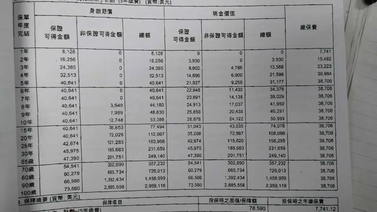 从楼主展示的繁体中文猜测是香港的 AIA 保单。如 5 楼所提,香港的保单(不光是 AIA,而是所有保险公司)都是出了名的以非常高的预期收益率(或者叫展示收益率)来做表格。尤其是 2015 年之前,各大保险公司都是以超过 10% 的年收益率来展示的,在复利效果下,HK 保单最后的 Maturity Value(通常到 100 岁)都是几千万,上亿的天文数字。