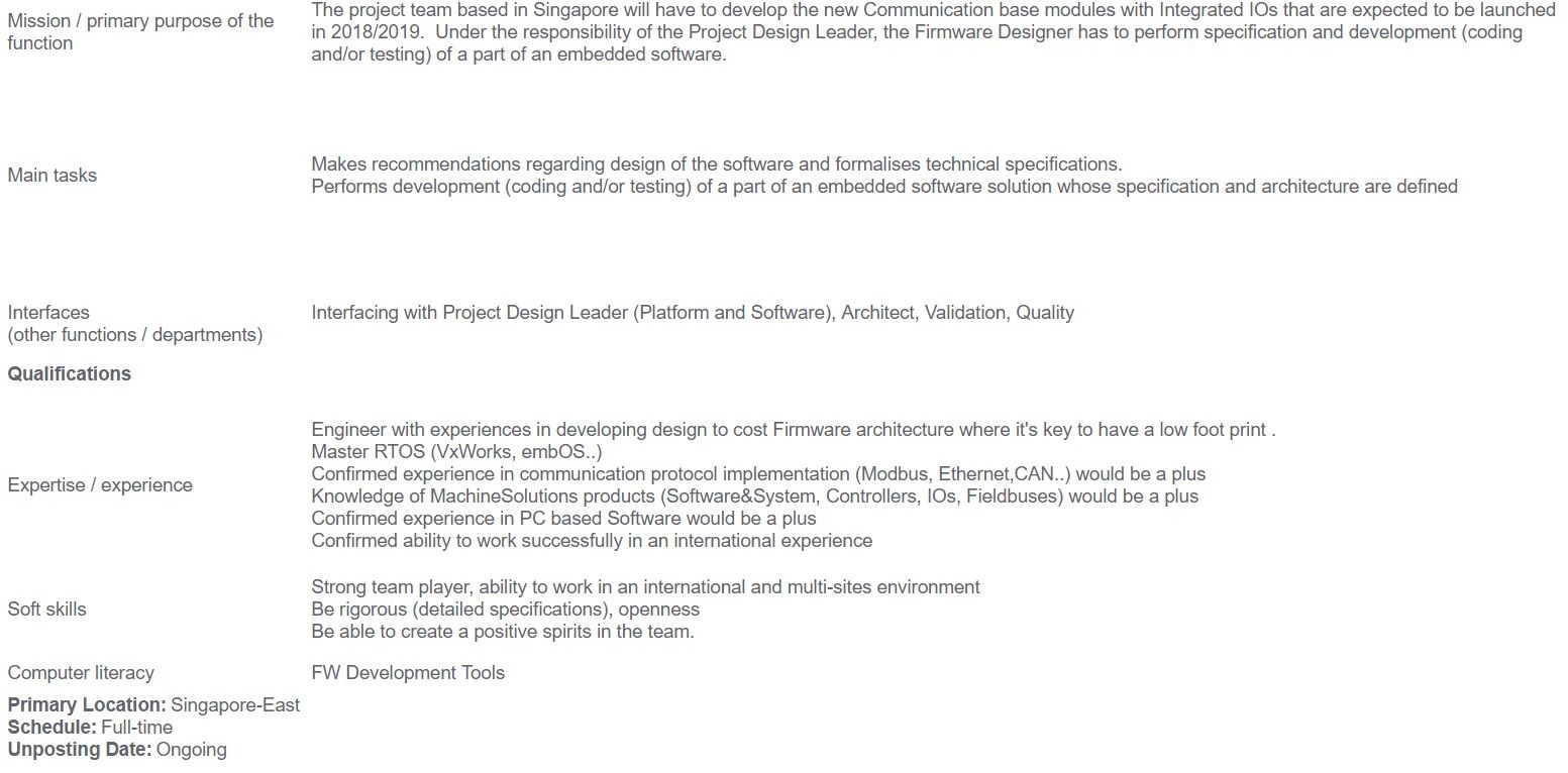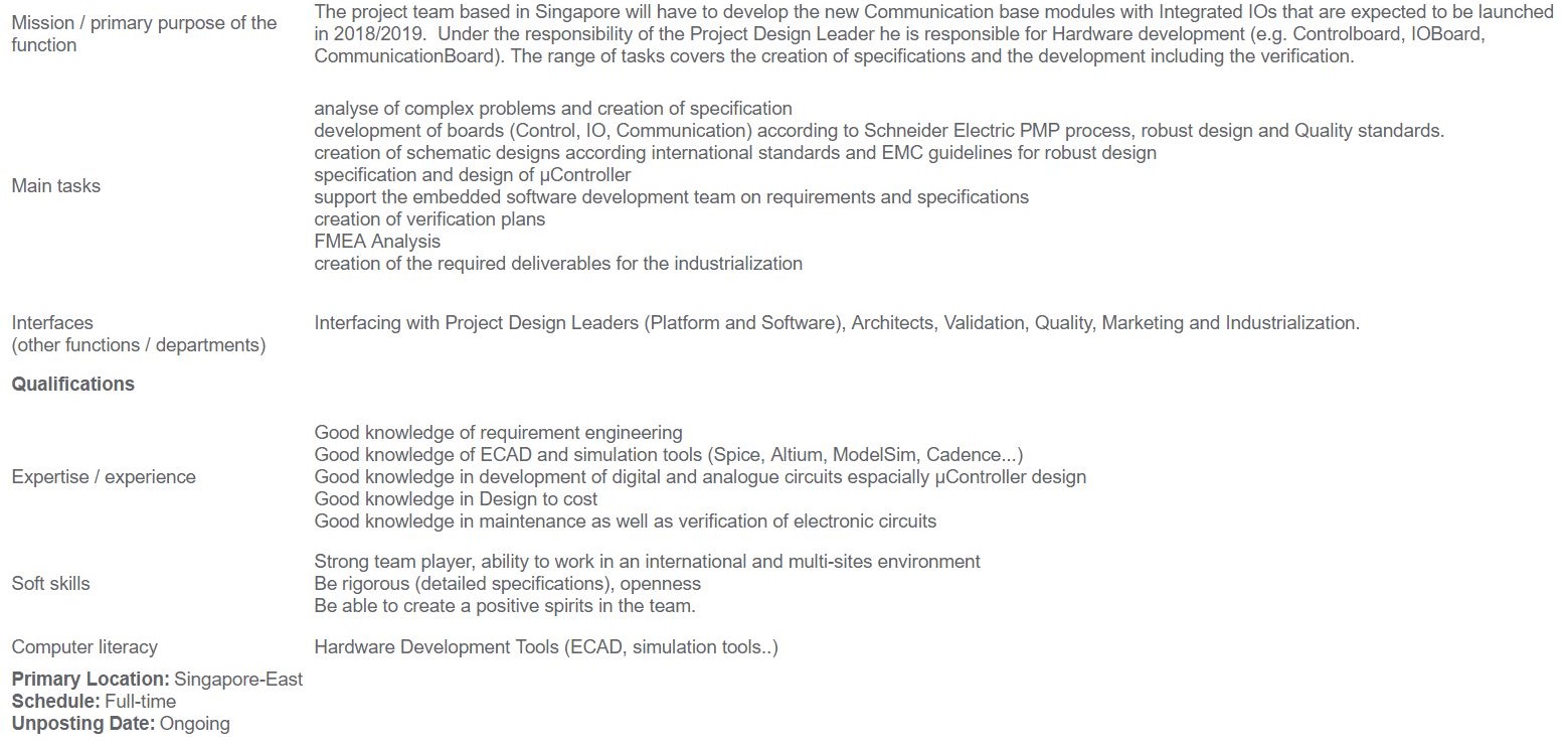 andy99 • • 41090 次浏览公司是施耐德电气。现在打算在新加坡搞一个新的研发团队,开发工业自动化相关的通信模块产品。