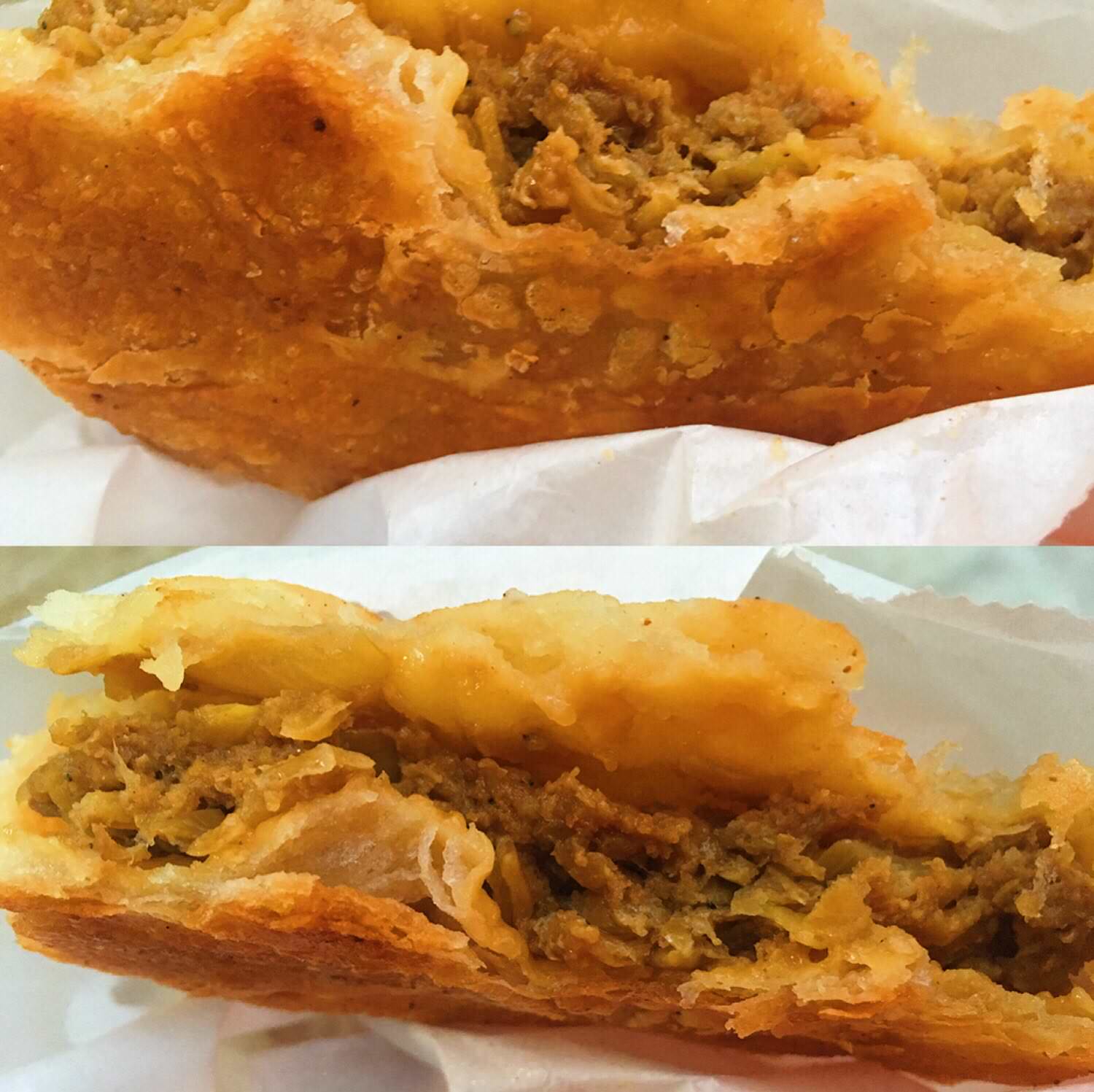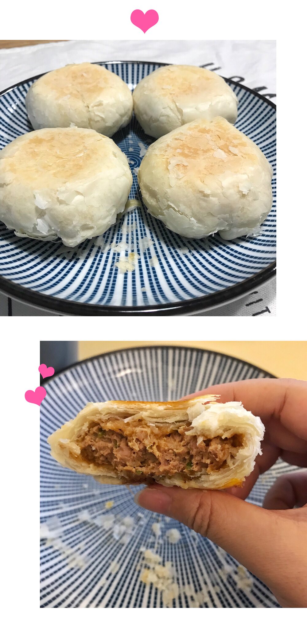 肉饼新出炉的酥皮才脆啊;))网购还得回锅油煎更麻烦╮( ̄▽ ̄"")╭