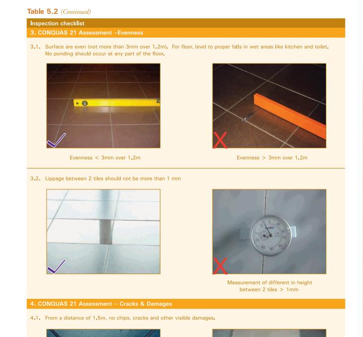 BCA 施工质量标准 Lippage between 2 tiles should not be more than 0.5 mm。 -