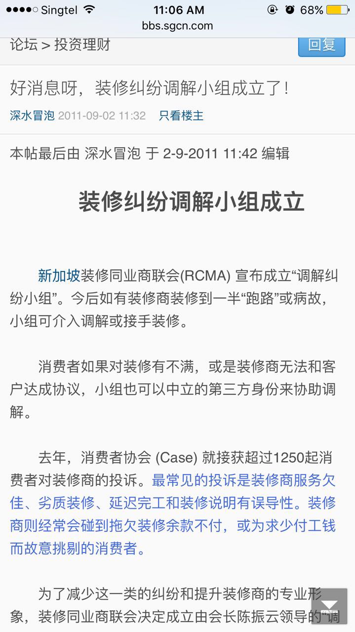 forward123 • • 40991 次浏览装修进行了一半,泥瓦工铺完了墙砖地砖,plastering已做完,全屋电也已经装完了。其他都满意,只有厨房和客厅的地砖不满意(两个厕所勉强可以接受),我们选的60x60的蒙面地砖(西班牙砖,$4.4 PSF),ID 跟我讲大块地砖比较难做到完全平齐,上周六去他办公室吵了一架,我的逻辑是:地砖铺不平不外乎两个原因(1)砖本身质量不行(2)铺砖工人手工不行;不管哪个原因都不关我们的事情,砖是他带我们选的,不行的话砖行可以换砖,工人手工不行那得找个手工好的来重新铺。ID 一开始一口咬定他的工人手工绝对没问题,说这块砖铺了好几家,别人家都能够接受,言下之意我们的要求高。我们当时就要拉他去现场看不同意,答应让砖行的人去检测。