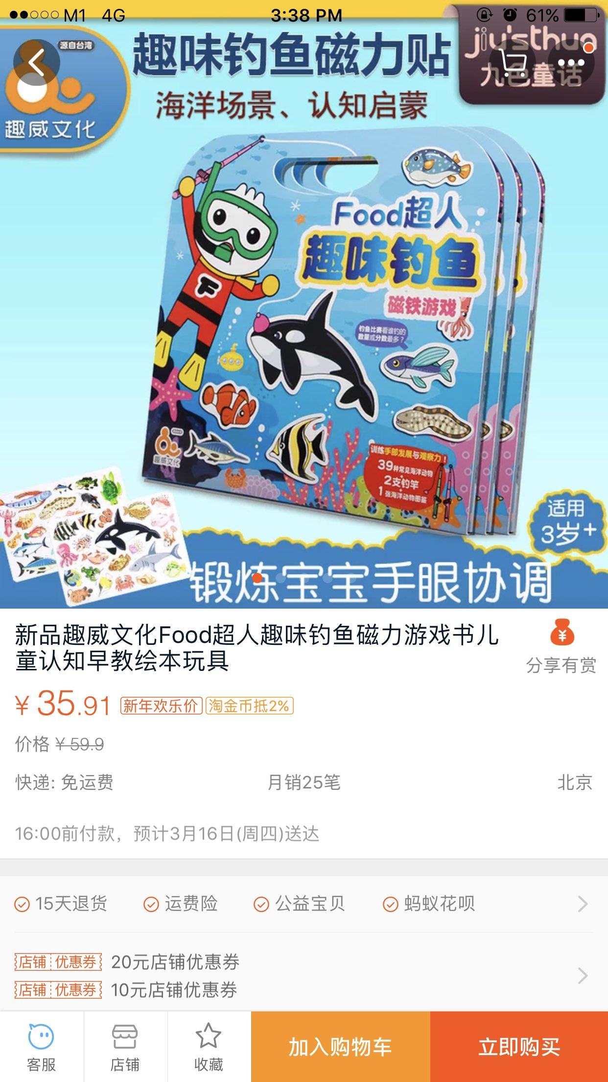 上次买的这个钓鱼玩具适合小龄宝宝。大淘宝必须哒!