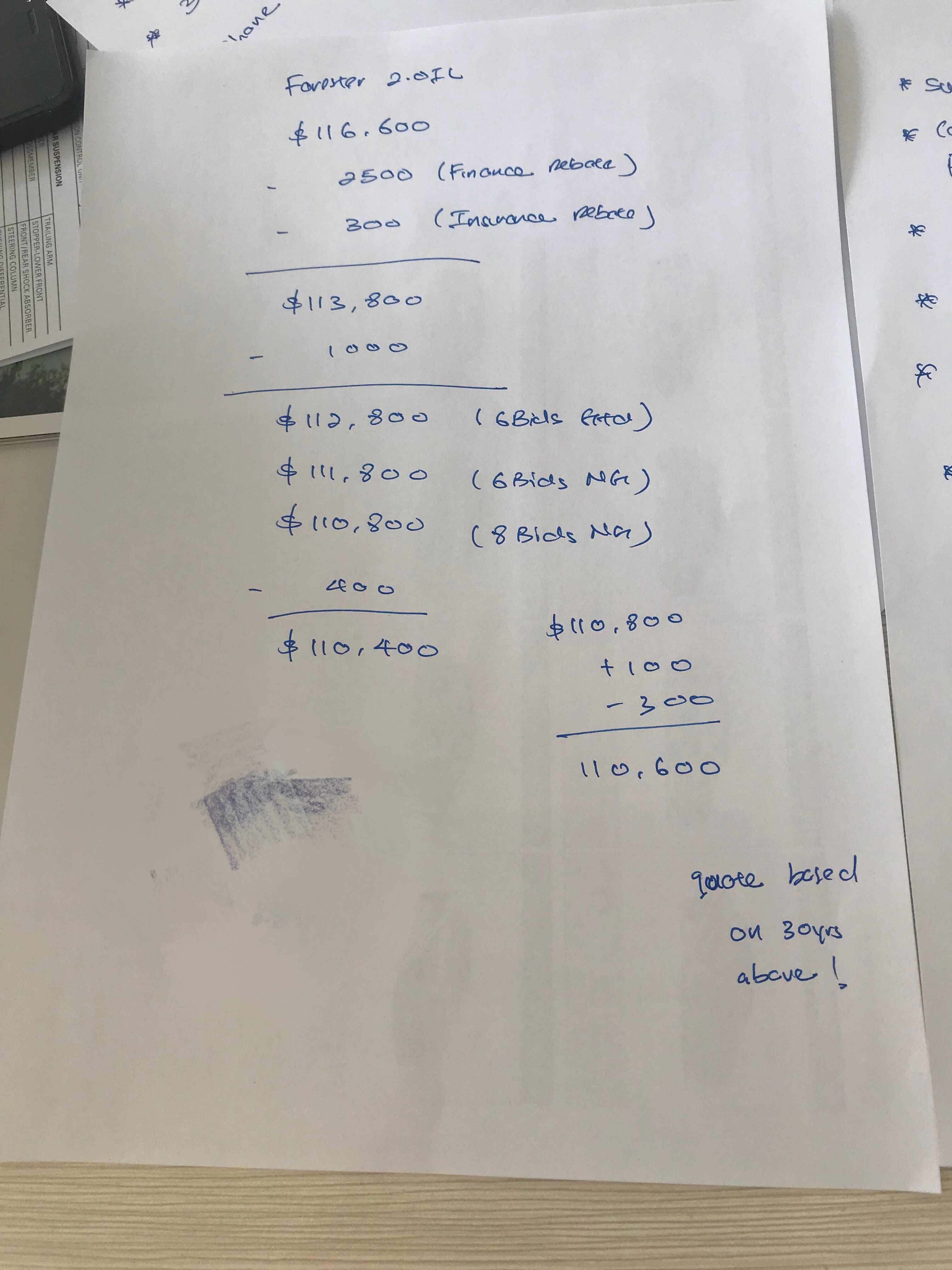 前几天给我发的Hi promo price for Forester is $94,800, after trade in and with 8 bids non gtd coe, it will be $89,800. Regards, Joyce (Subaru)