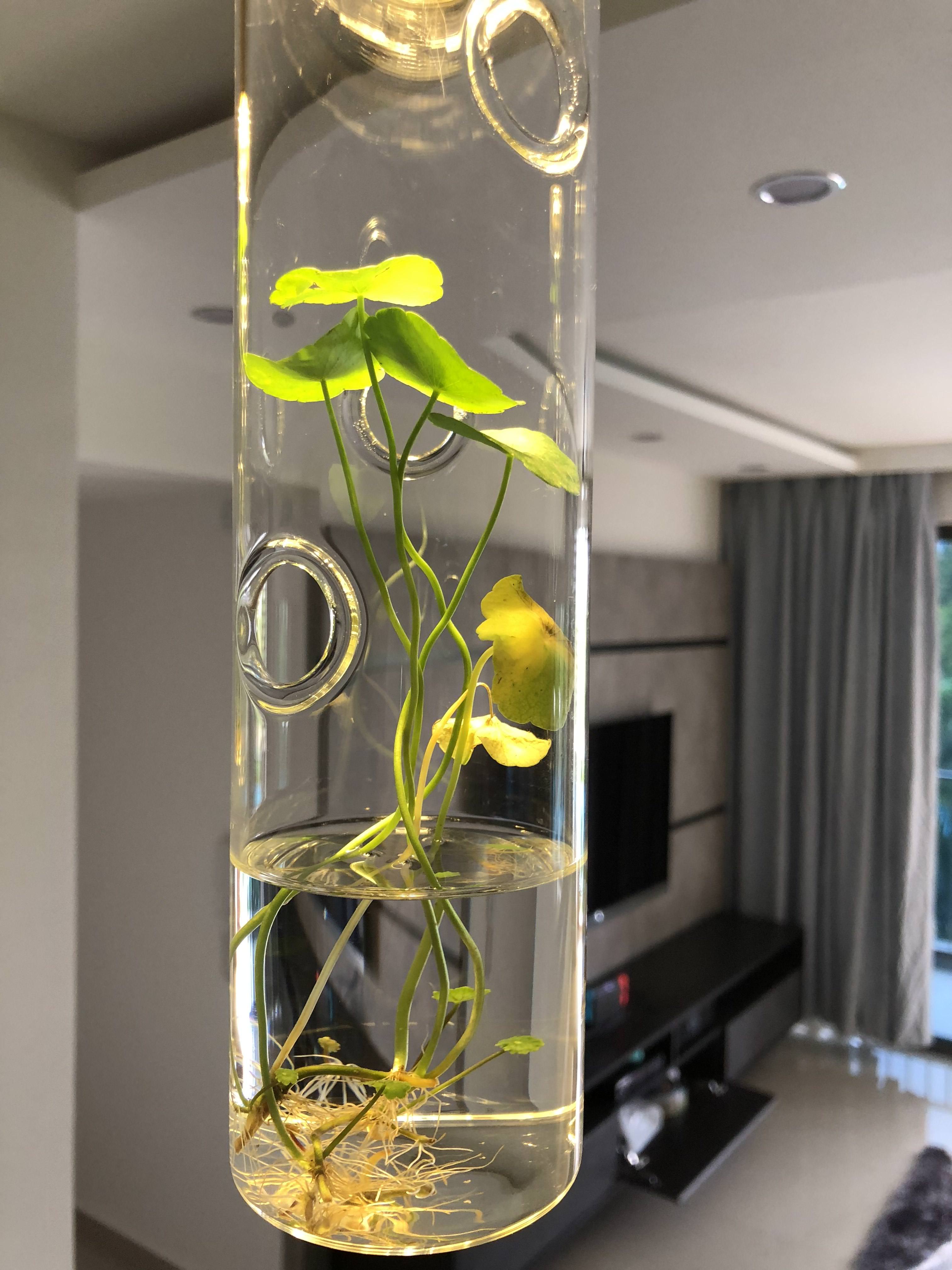铜钱草超好活的不用怎么管,黄的叶子弄下来丢掉,不然水会臭。但是,铜钱草要注意,最好别水培,根须太密集发达,我每次铜钱草水培水里都会发现蚊子幼虫。绿萝和常青藤就不会。