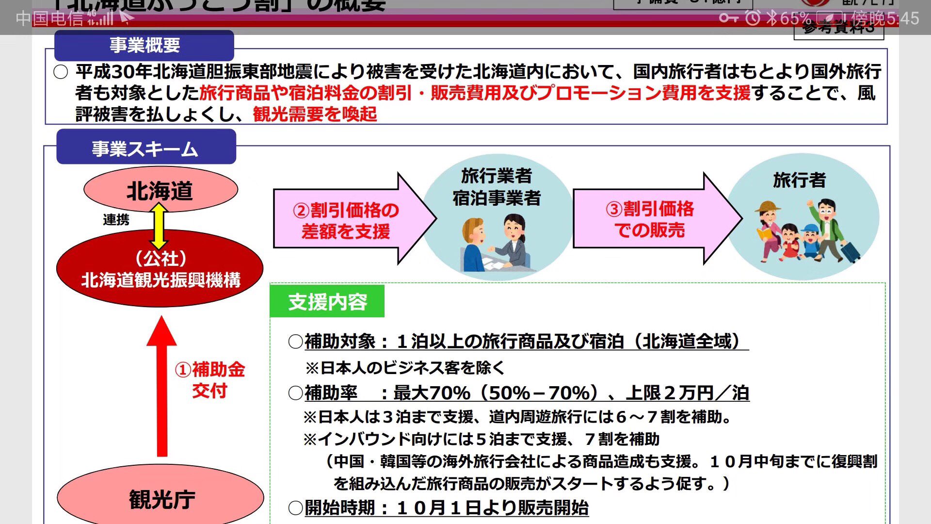 为振兴北海道观光,日本政府宣布从2018年10月1日起实行游客住宿补助。