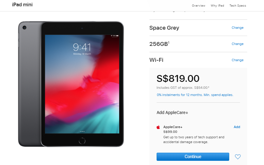 我的是一套iPad mini 2019 256GB space grey, Apple pencil,and apple care