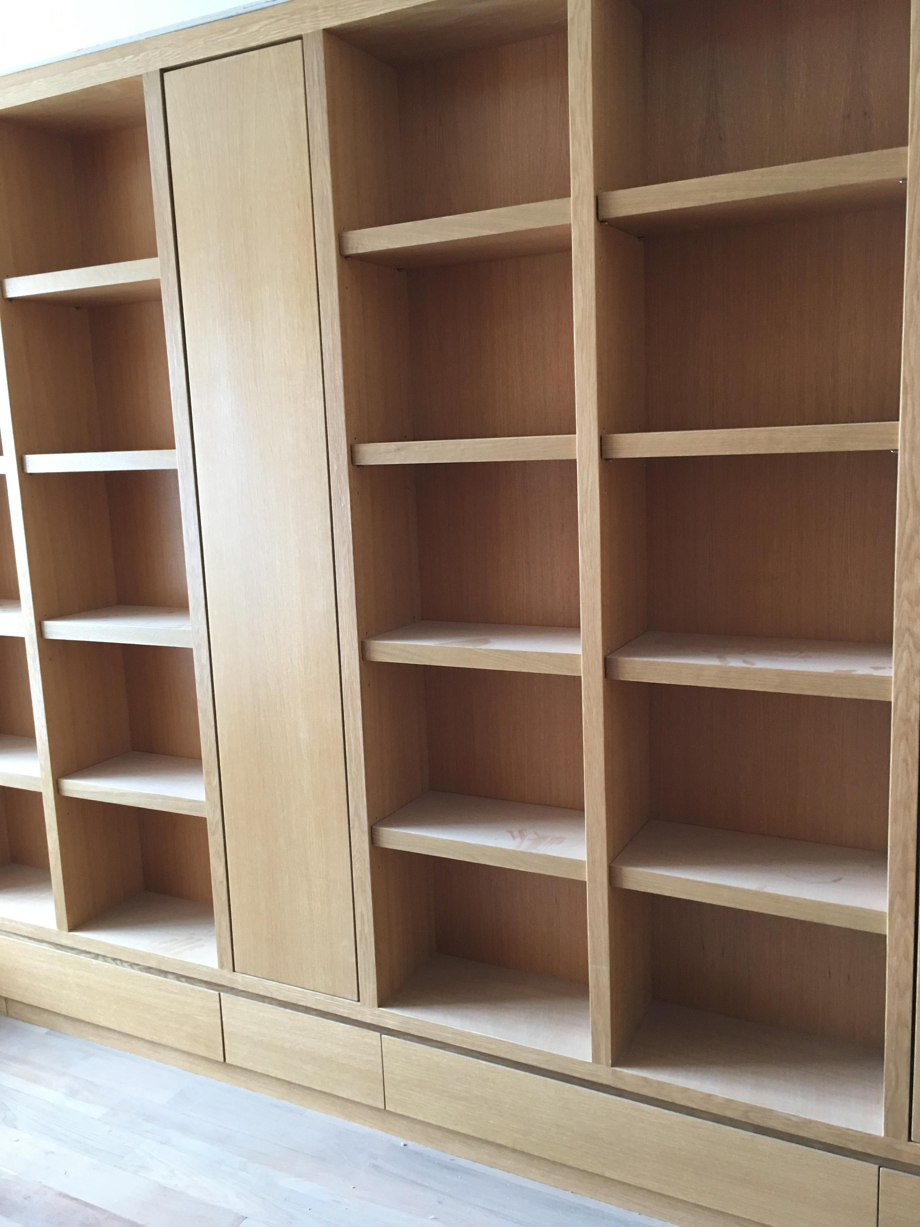 这是他老婆的书店,他设计的,里面全是用松木的实木贴皮,颜色很浅。 -