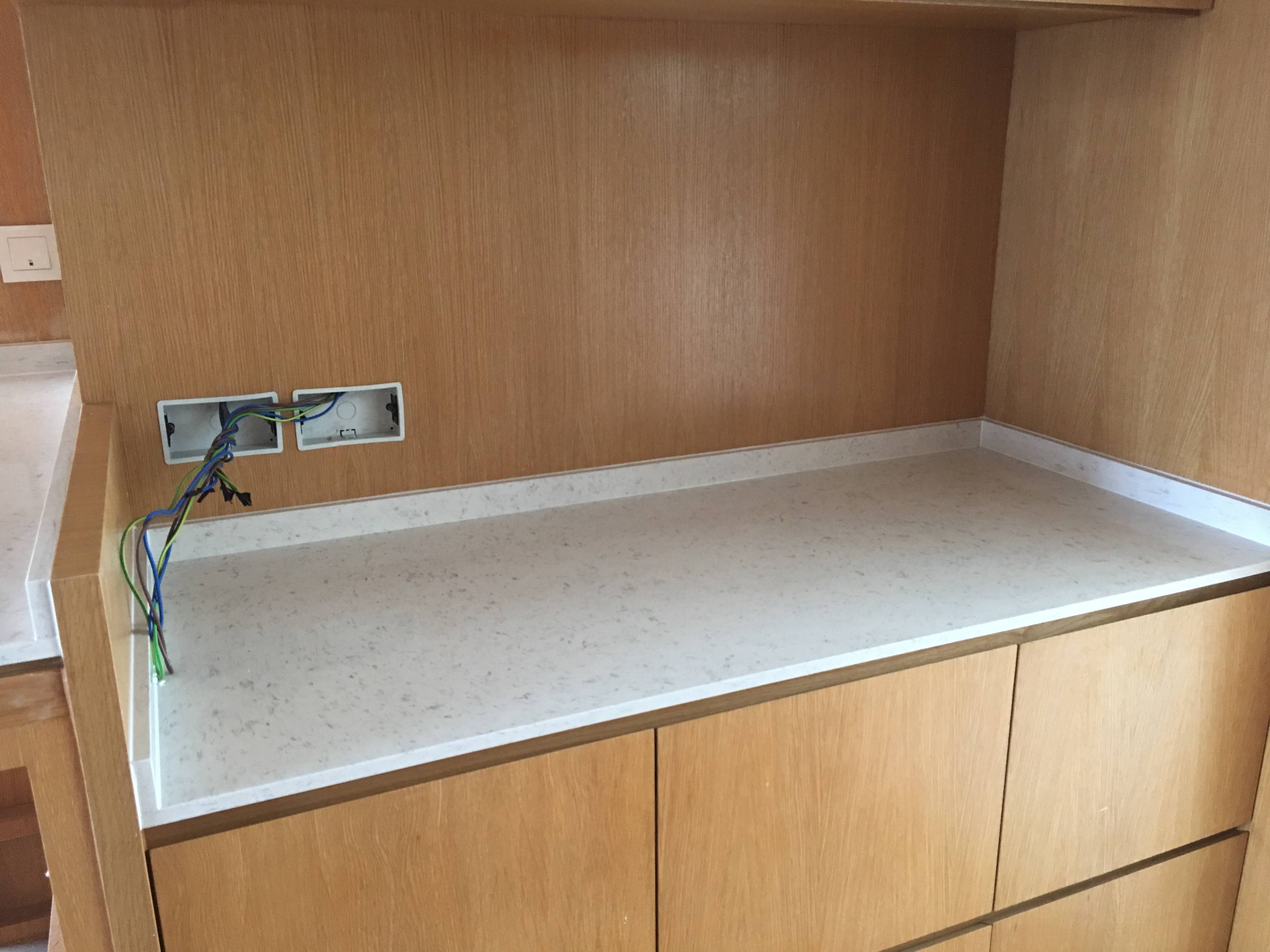 抽屉是我要的,的确比较好放东西。有的地方做不了抽屉,但是他也帮我把那扇门做成抽屉的样子,比如水池那边,这样会显得比较高大上吧!等我再去时就来发一篇机关巧妙设计