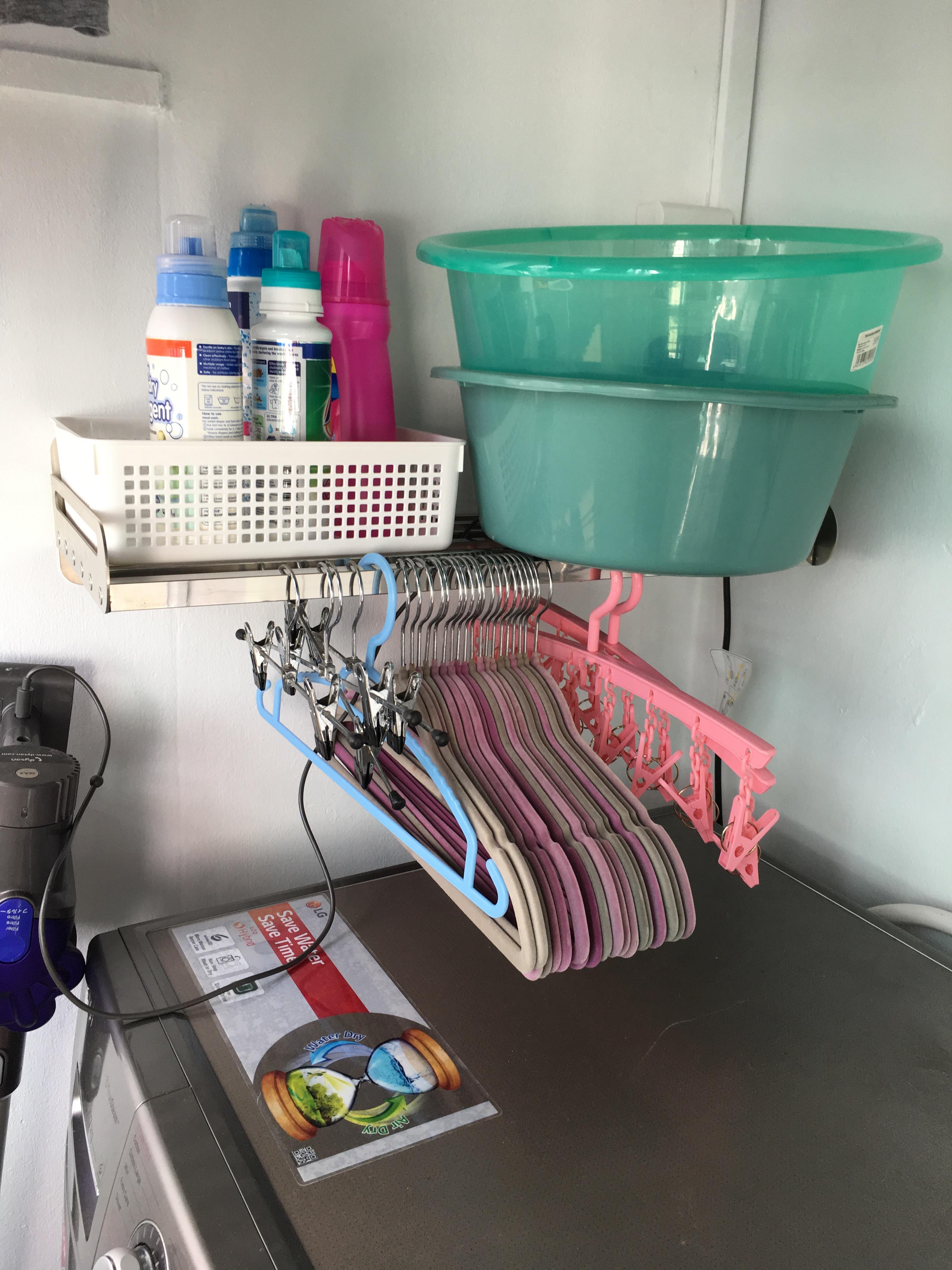 满意三:顶天立地窗台晾衣架不用的时候可以把两根棍收起来,不仔细看都看不到架子ne