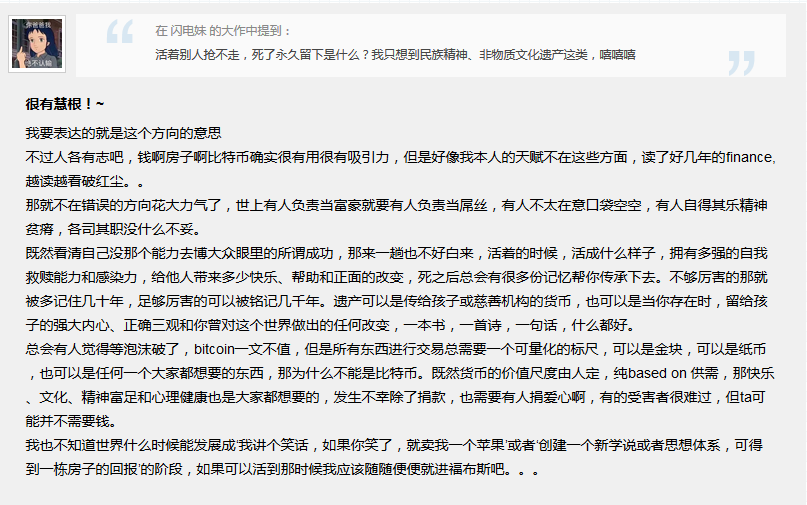 shaokunlun • • 27119 次浏览留园金币是为回馈网友支持,根据用户的社区贡献值,算法自动分配的社区币。金币由留园社区基金作价值背书,可随时兑换奖金奖品。金币一定程度上也代表着留园社区的虚拟股份,积累到一定数量的金币后,用户有机会进入留园社区用户董事会。董事会成员将与留园管理运作团队共同协商制定留园网络的发展规划,并督促提醒管理团队维护自由,开放,包容,有趣的留园社区精神,维护用户的社区权益。