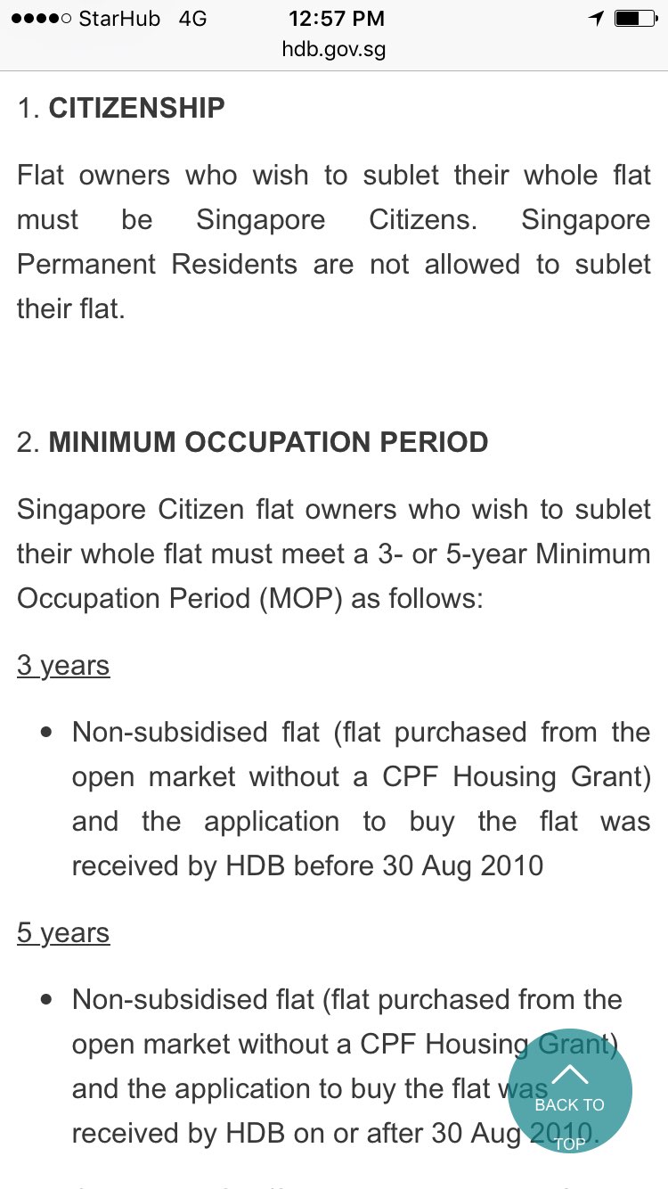 两个大前提1. 不可以整租的千万别租,锁一间也不能租。分分钟被HDB收屋子。
