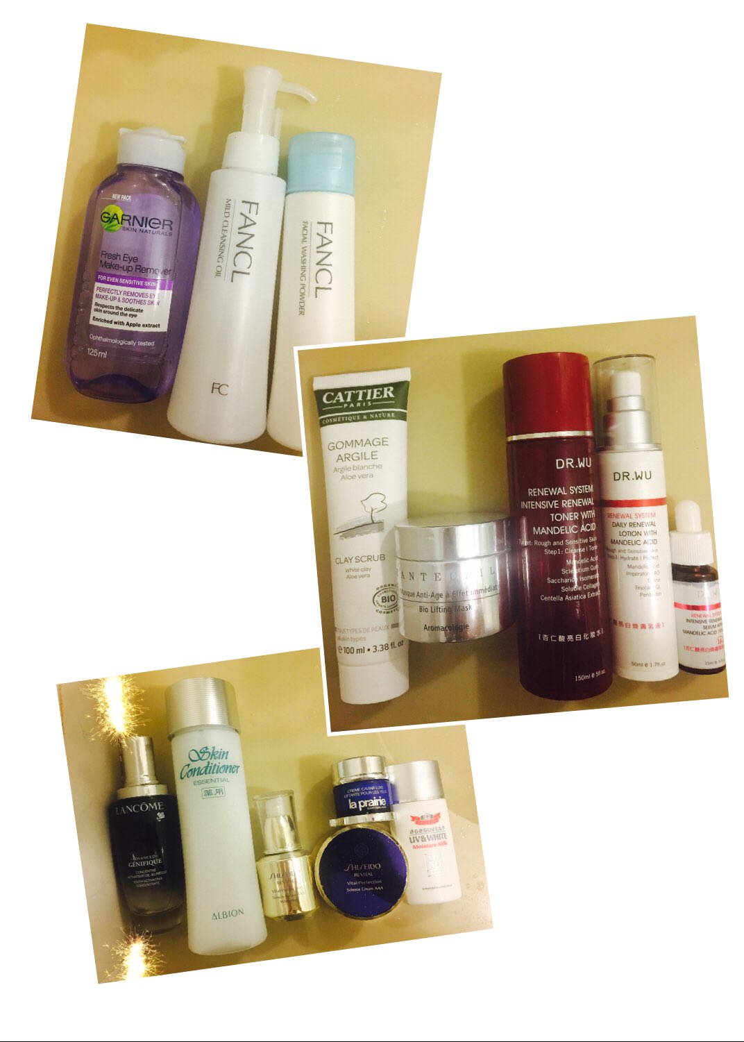 Dr Wu 杏仁酸系列水乳液精华. 我特别在意毛孔干净度. 酸类产品也是必备的 大概一周用一两次. 这个系列很适合皮肤暗黄粗糙毛孔堵塞用 初期可能有不良反应 长痘痘红点之类的. 水和乳液我用下来比较温和 几乎未见效果. 18%浓度的精华一周某一天晚上擦整脸其他啥都不擦这样来使用.