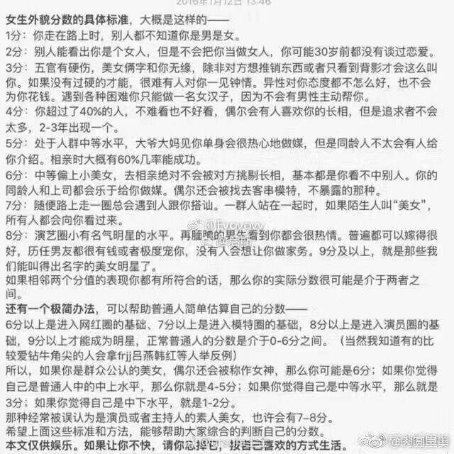 颜值嘛,我觉得我自己7分(有点自恋,勿喷)希望另一半也能有7分及以上。