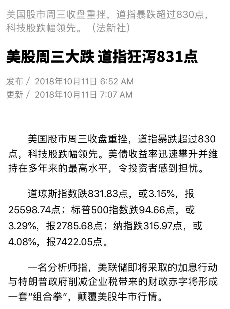 我是老万 • • 27016 次浏览美股大跌,危机一触即发