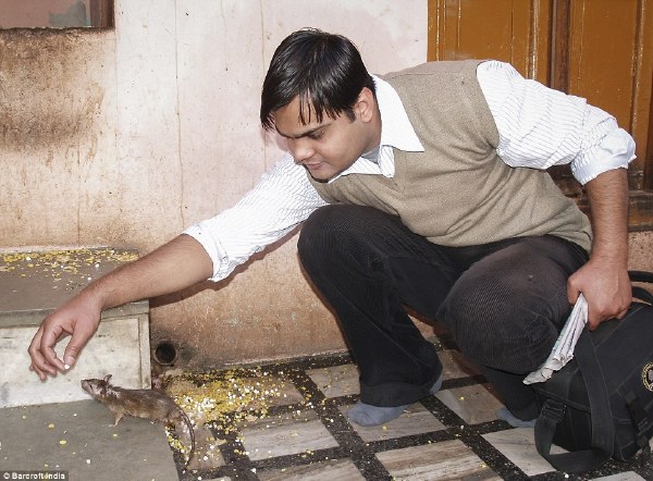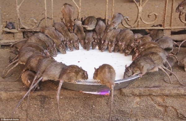 在一个印度寺庙里老鼠泛滥成灾,有超过20000只老鼠,而信徒们却以此为乐。