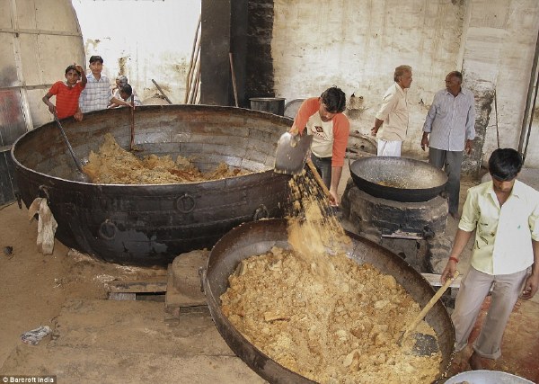 信徒们每天都在一个巨大的金属盆里放入牛奶和粮食,老鼠围成一圈享受美食。很多旅游者像这些害虫们投递甜食和糖果。老鼠吃剩下的食物也被认为是神圣的,这些食物有时还会被信徒们吃掉,尽管已经被老鼠啃掉一半了。