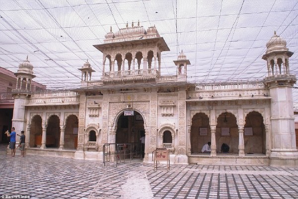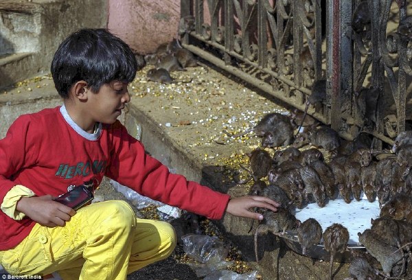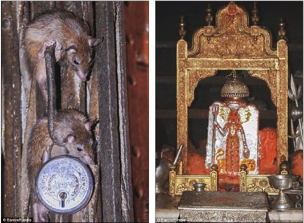 这个鼠神庙位于印度的拉贾斯坦邦地区,该地区以爱护老鼠而被人熟知,而老鼠通常被城市地区的人视为祸害。老鼠们在这个庙里窜来窜去,它们在这里被喂养、保护。信徒们为了防止老鼠受到食肉动物如猛禽的伤害,还特地在庙里搭建了铁笼和铁丝网。