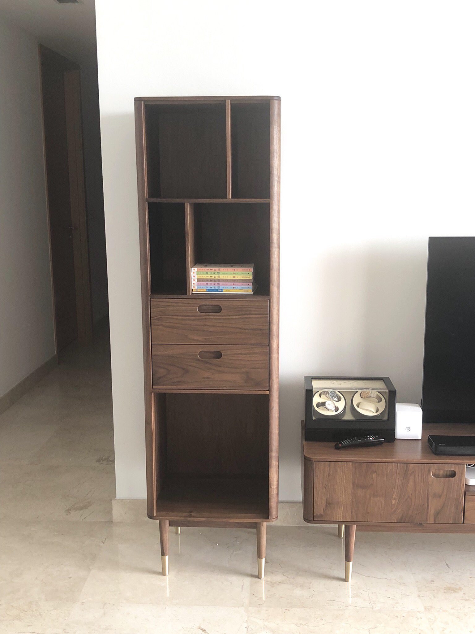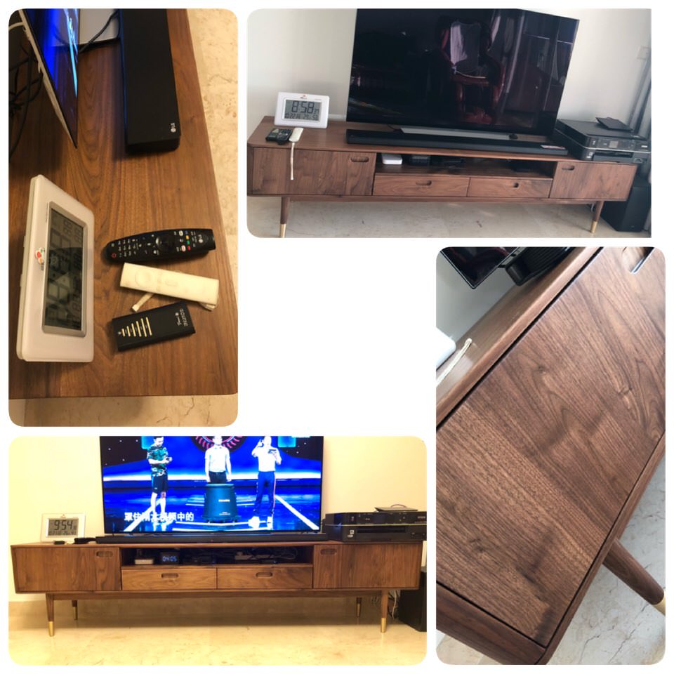 最近电视柜坏了在淘宝买了个号称北美胡桃木的电视柜,海运过来非常满意