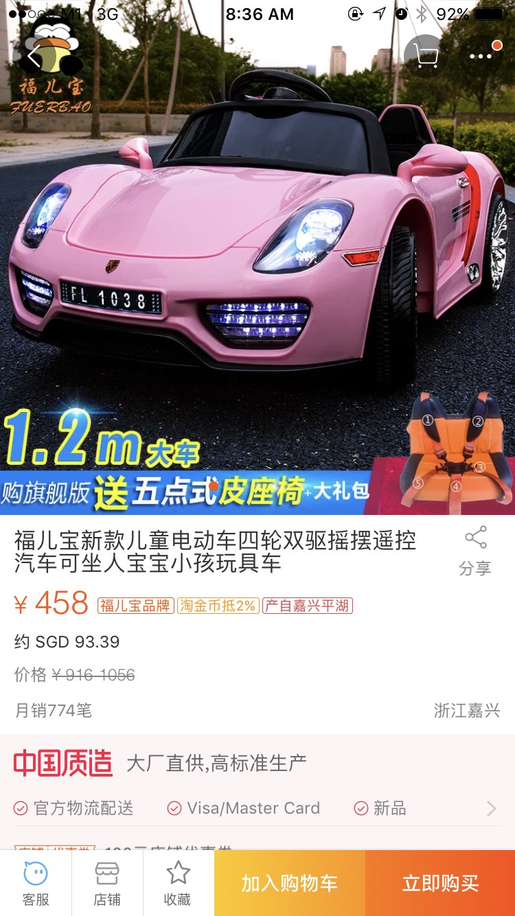 carousell上很多去年friso奶粉搞活动送的电动小汽车充电的,还有遥控,据说值300多,我看全新的也只卖百多,还有些二手的更便宜,感觉比海运加运费合算,而且很快就可以拿到
