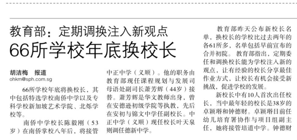 新加坡的教育系统校长很重要领导能力,对老师学生的影响,都很大,绝不是换个人或狗就可以的,