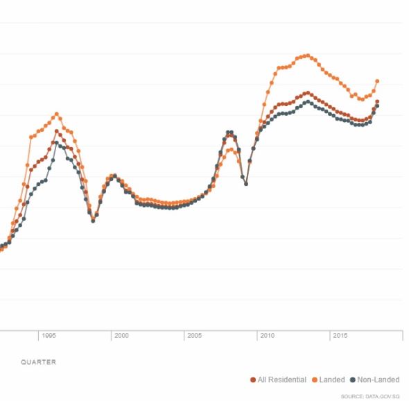 橘色是landed,基本上波动比non-landed更大,涨跌幅都geng'da。