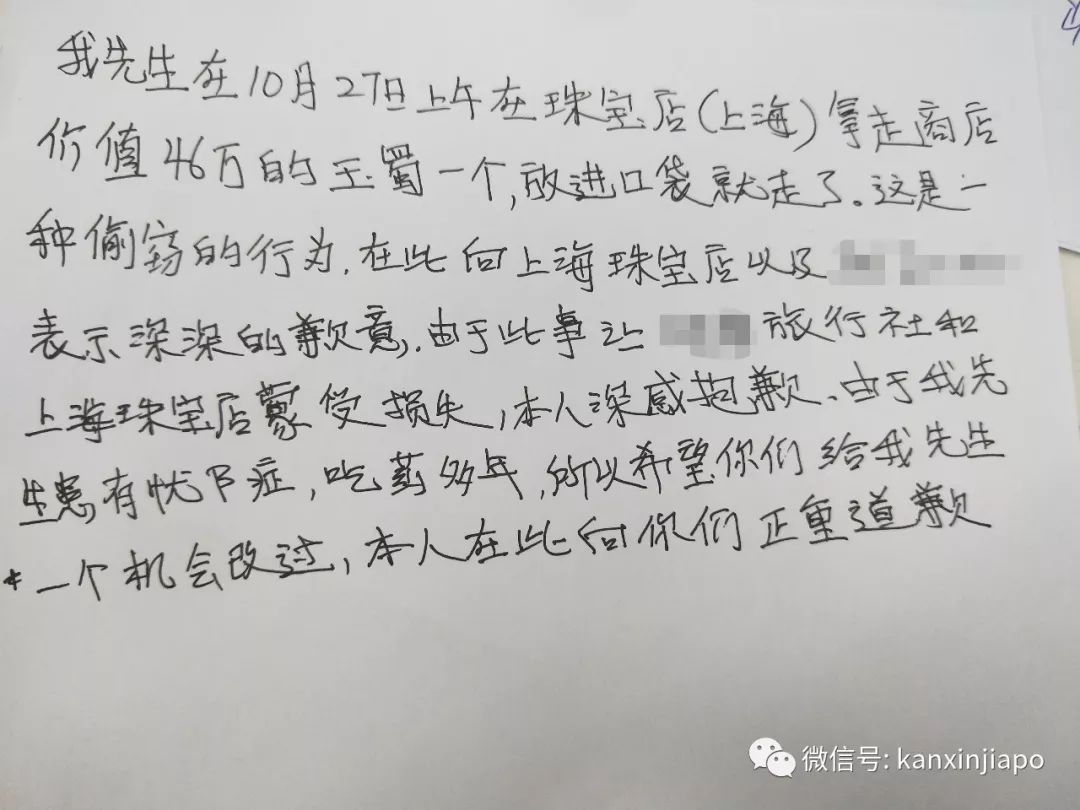 一对新加坡夫妇,跟团游上海时,竟然顺走玉器店价值46万元(8万新币)的玉镯!被发现后,还声称这是玉器店骗钱的阴谋,拒不归还手镯。