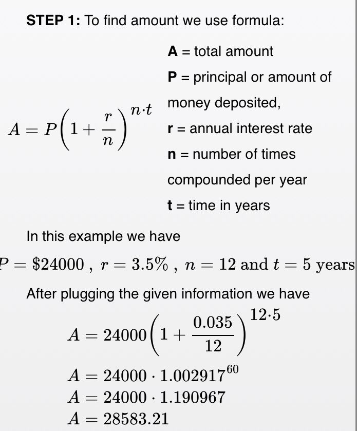 是compound by month的话第一年的24000在五年后会变成28583,其实也没多少利息,主要是基准年利息3.5%低了,5年前随便一个银行理财都能给5%,不过最近只有4%了,所以可以和老人商量一下利息能不能按照余额宝现在的2.5%左右计算,中国降息是大环境,不能老是给3.5%。以后中国要救市的话就只能学习2009年的美国,快速把利息降到0。
