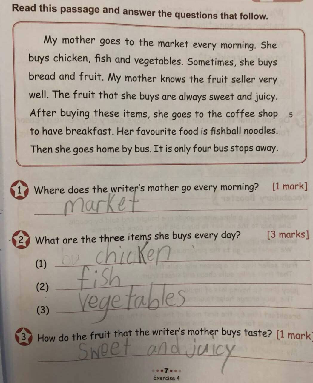 下文最后一个问题是,do you think the writer’s mother cooks everyday? give a reason for your answer.