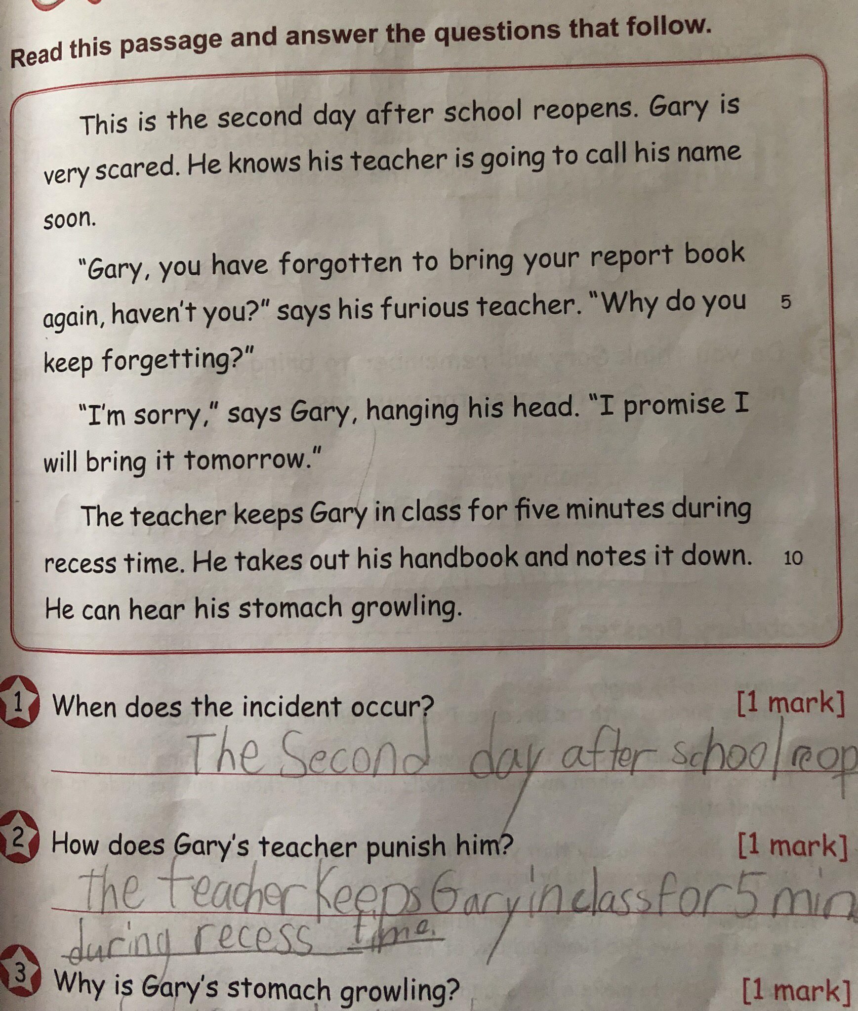 另一篇最后一个问题,why is Gary’s stomach growling?