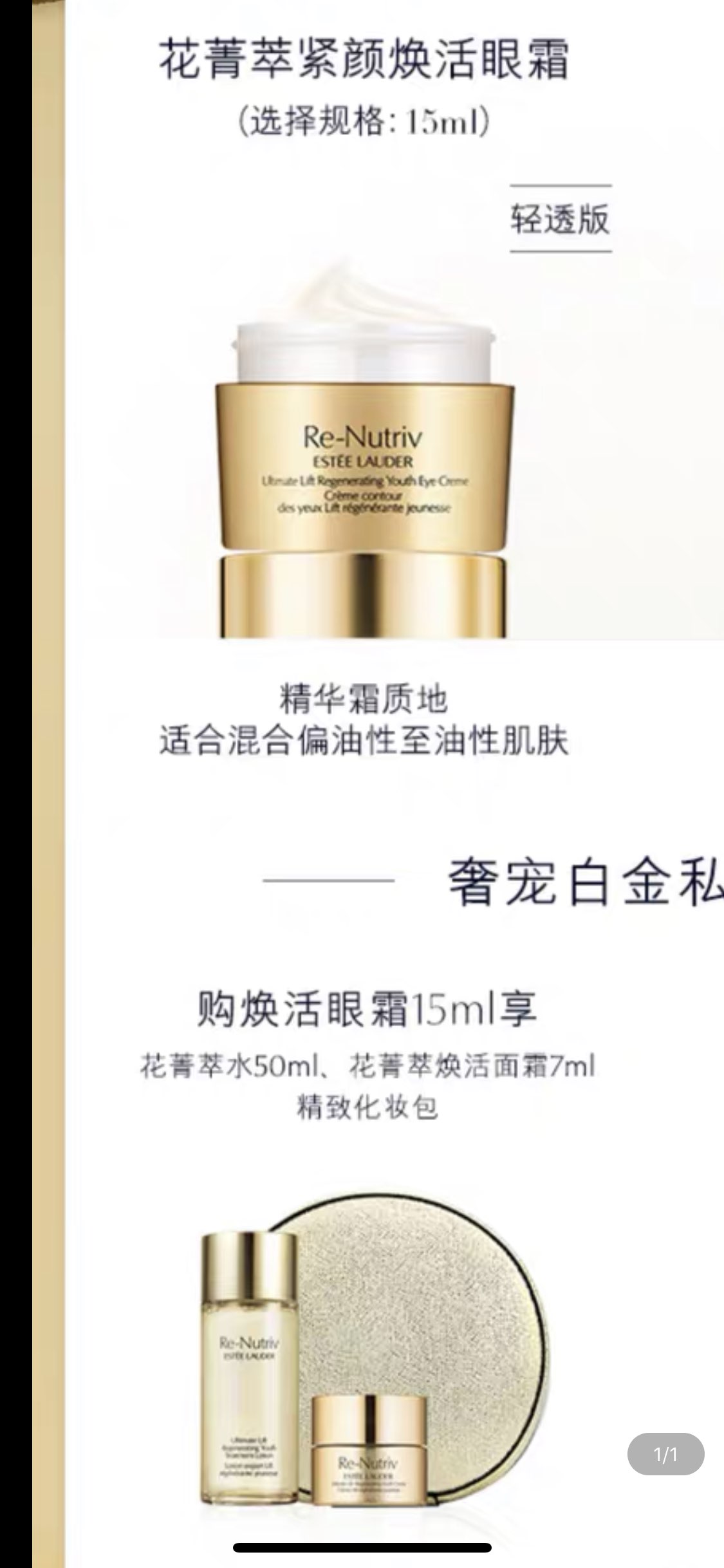 29 雅诗兰黛re nutiv ultimate lift regenerating youth eye creme白金眼霜套装特价145,2021-7到期。专柜光这个眼霜就231