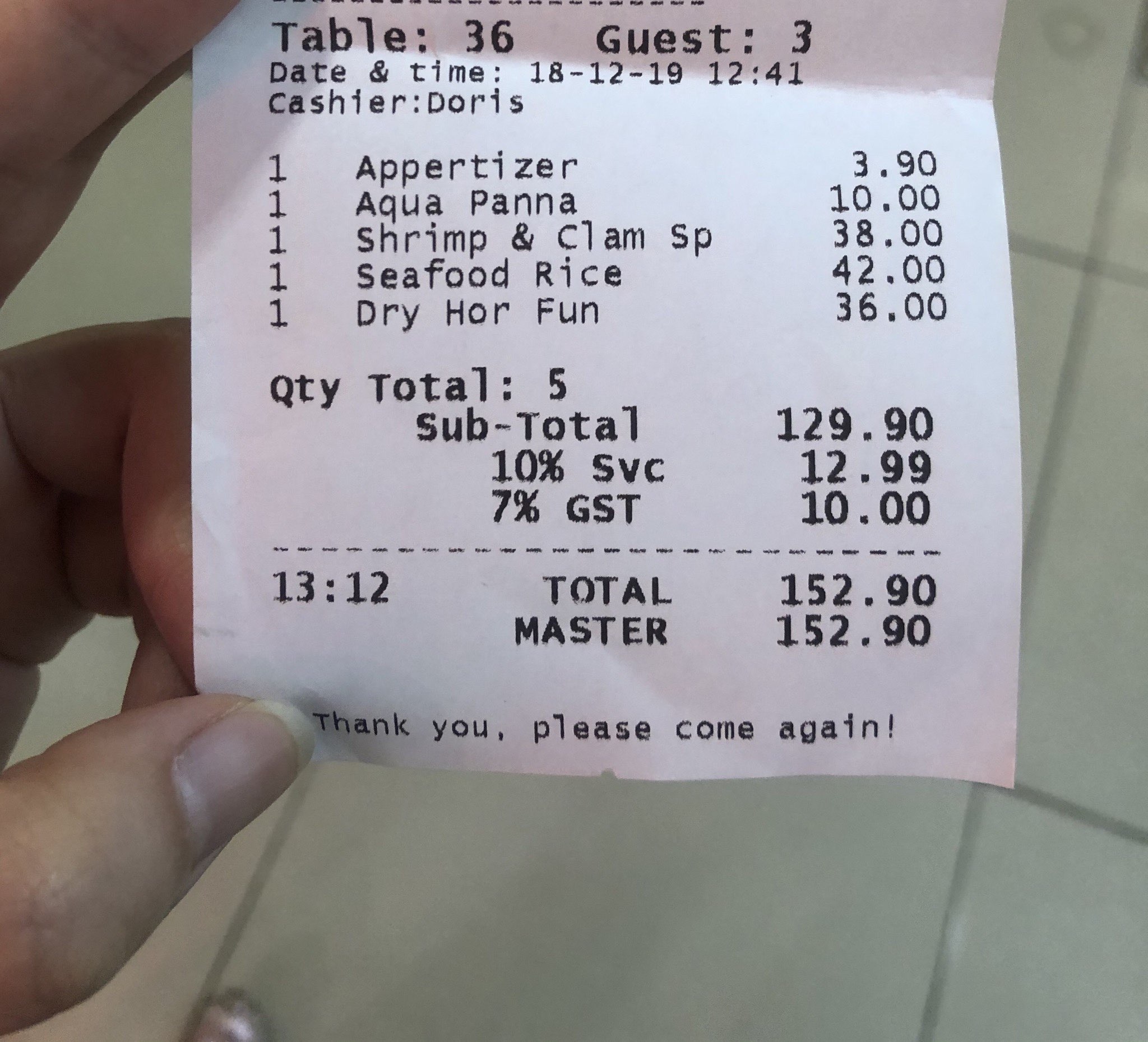 3个人吃150不多但是150就吃点干炒河粉就太不合理了。