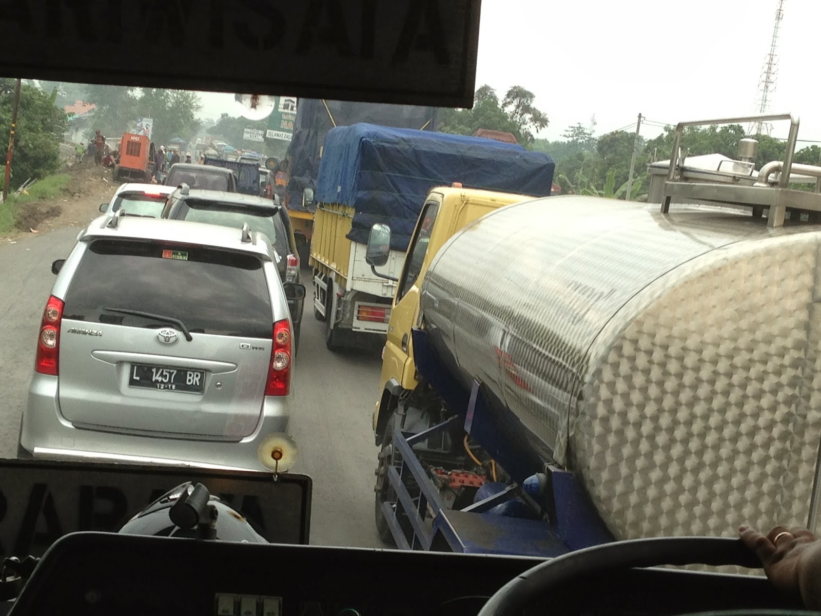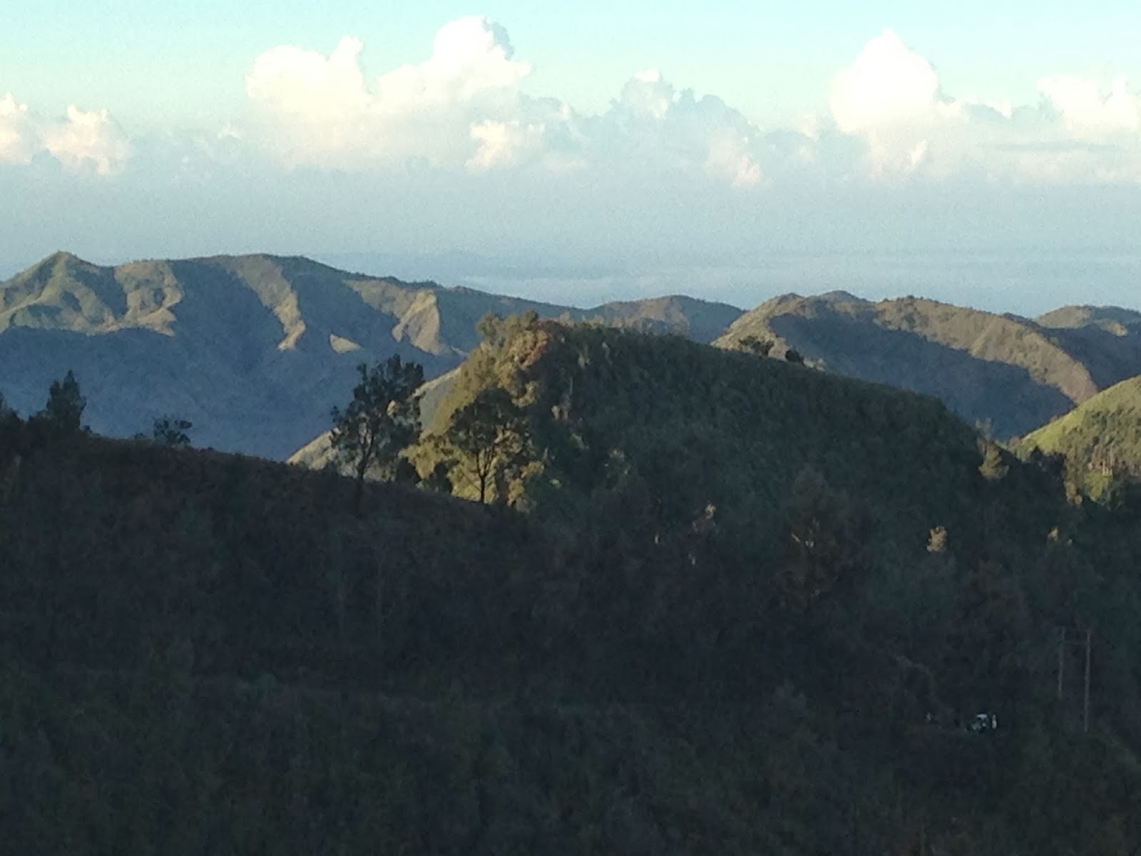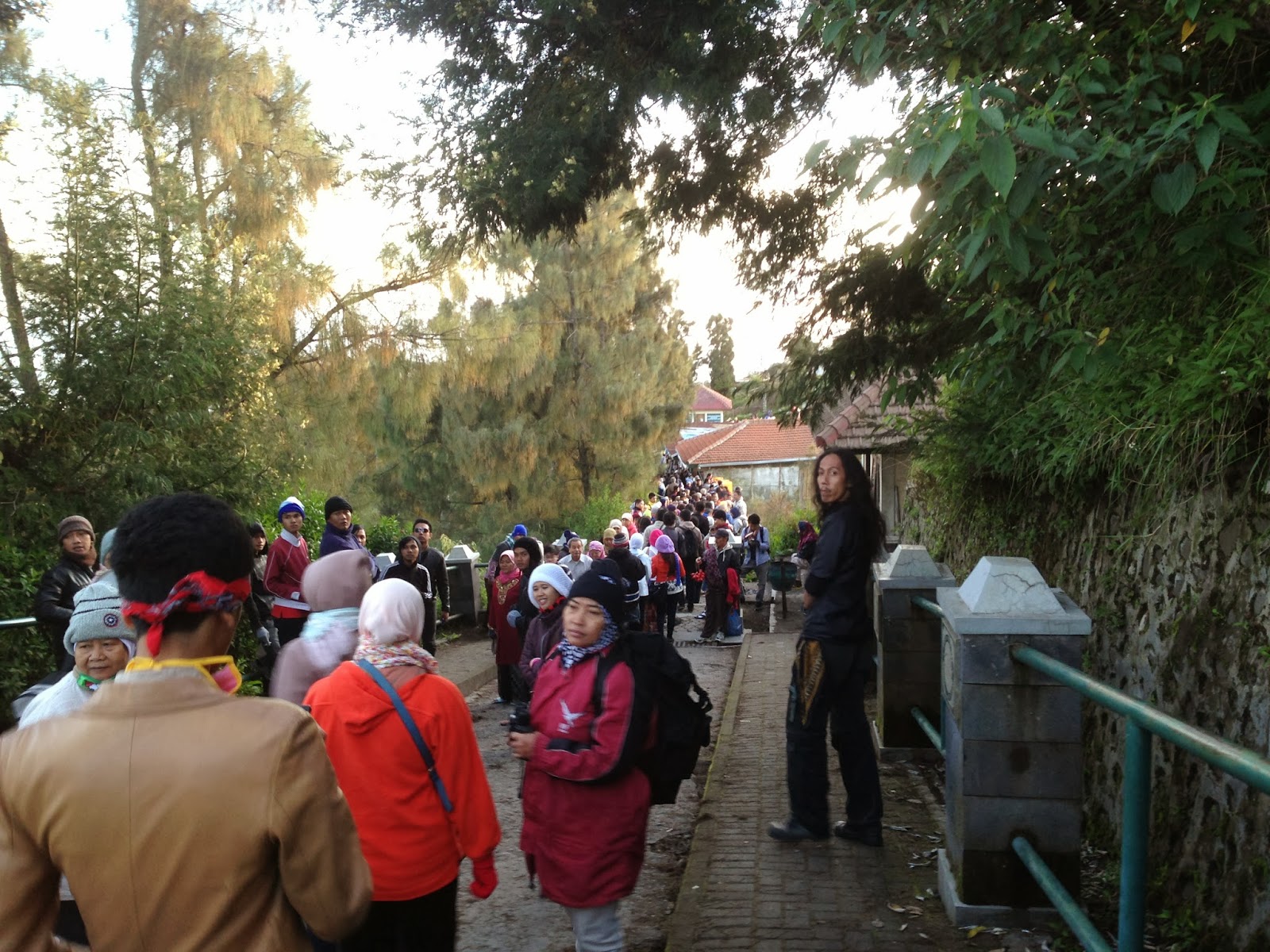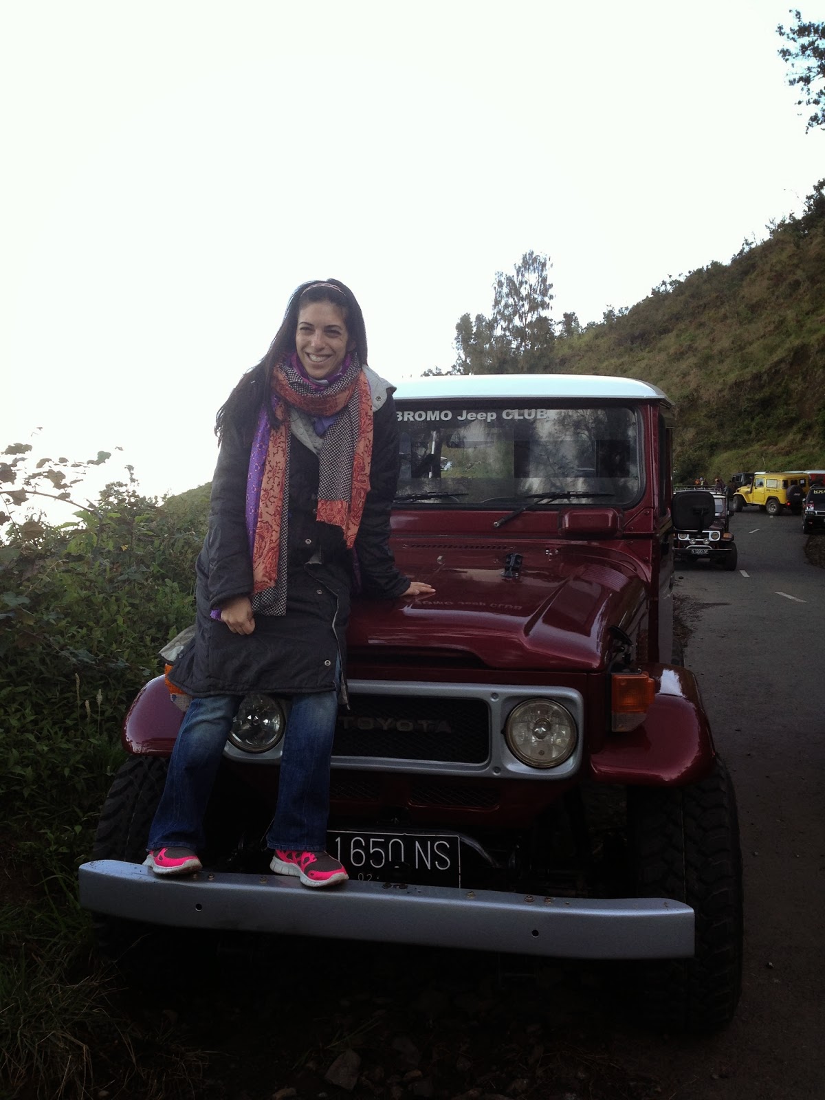 从机场去到bromo山脚下还需要差不多一个半到两个小时的车程,当然,我们肯定不是taxi或者包车去的,虽然在去汽车站的路上遇到一大堆要载我们上去的taxi,我也随口问了下价格,简直就是狮子大开口,跟我做的攻略上差不知道有多少倍,我们理都懒得理他们,然后就上了一辆大巴士,如同事所说,印尼的巴士都是开开停停,经常有人上来叫卖东西。但是总体来说印尼人民给人的感觉还是不错的,除了在上车的时候猪猪说被人家吃豆腐了哈哈哈哈哈