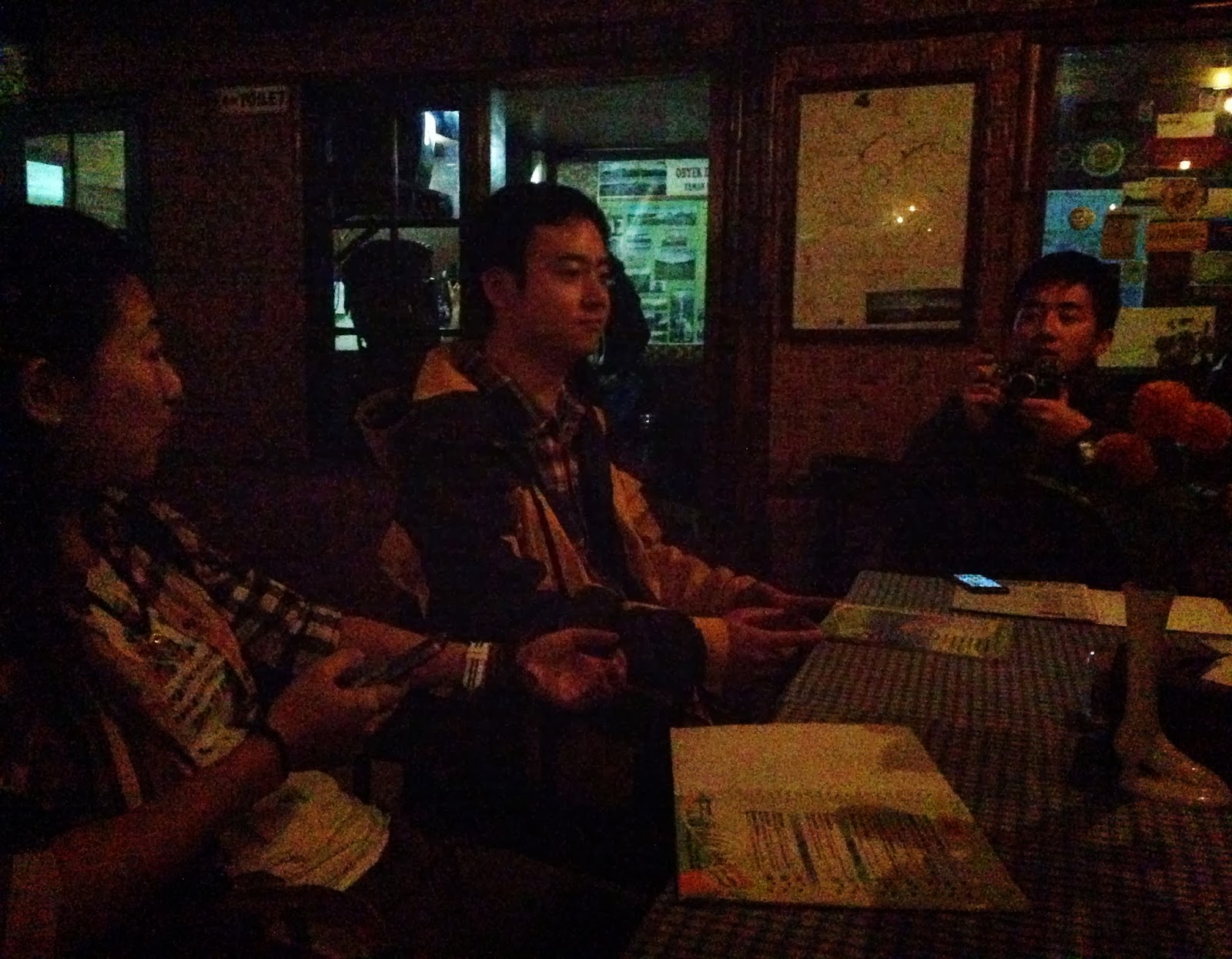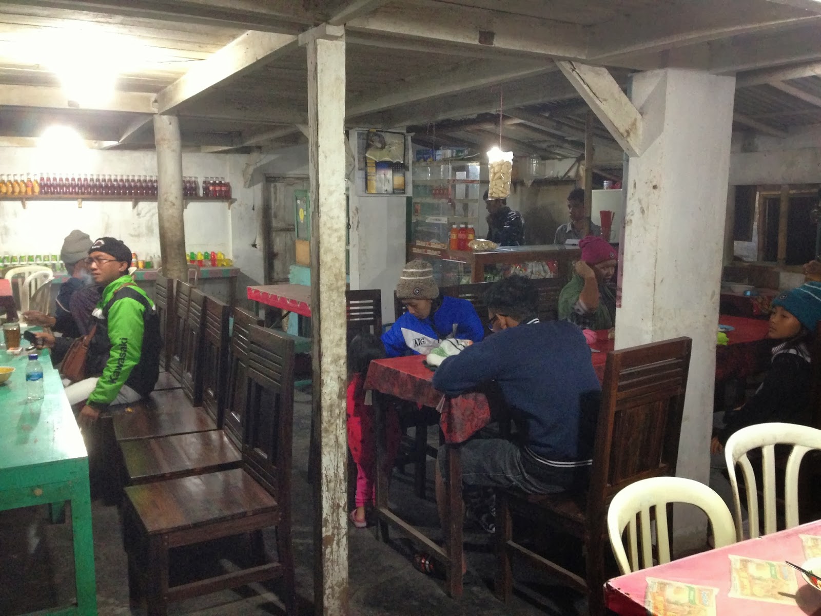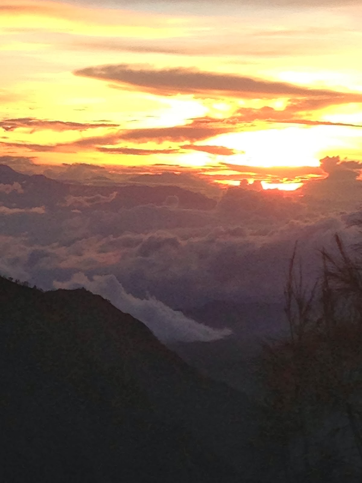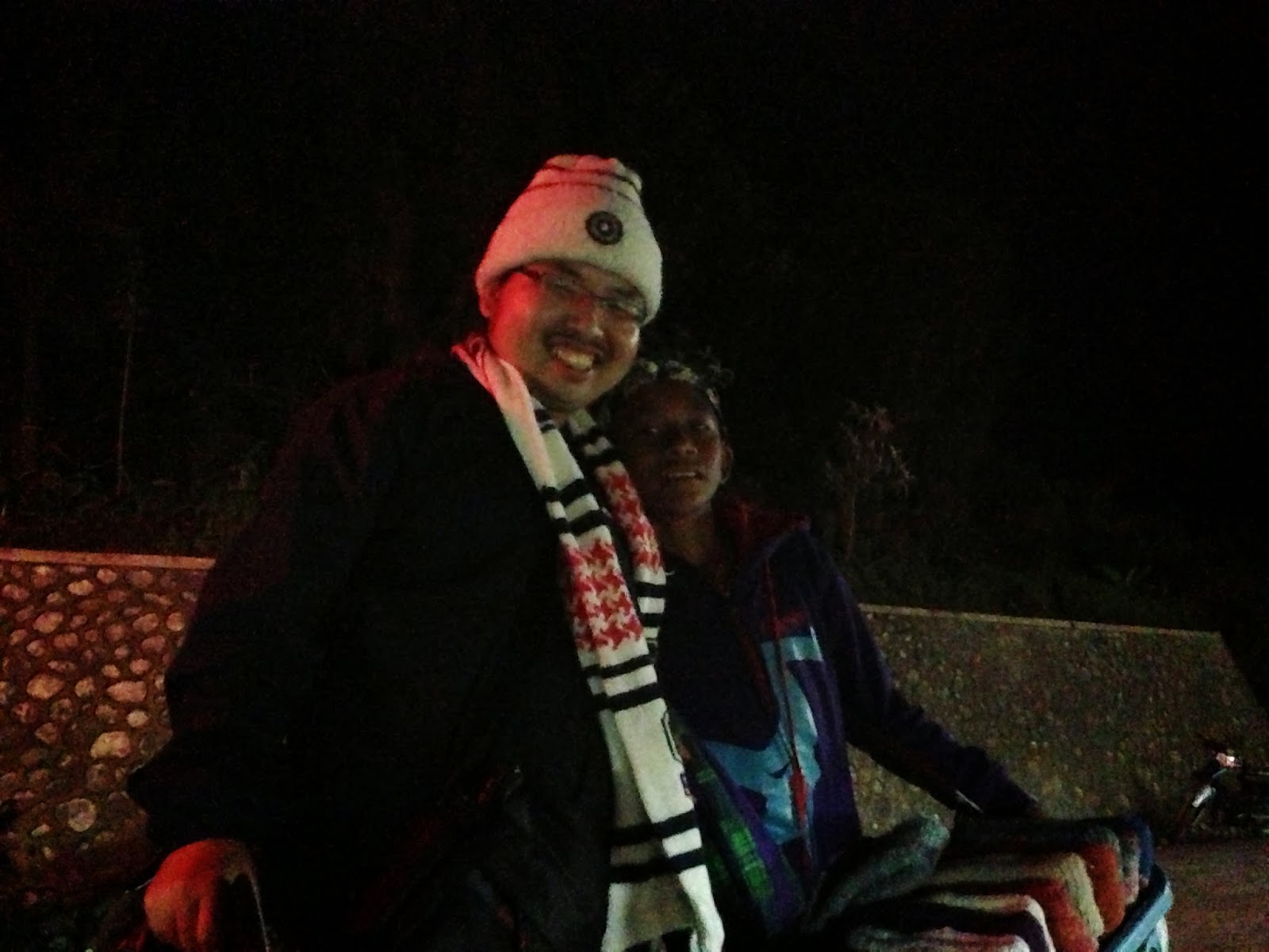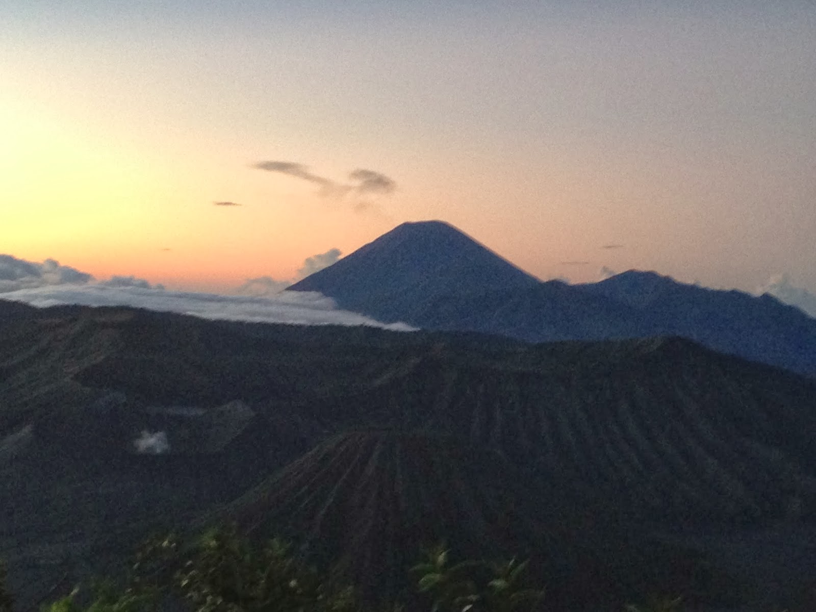 这三位就是我们在这边凑巧遇到的中国同胞啊,川妹子和川小伙,是不是特别帅,川妹子就是漂亮,特别喜欢四川人的原因除了在这边接触的四川人不少发现都有个特点就是特别大气随和,所以本性上就特别喜欢四川人。他们没有订酒店,跟我们一起上了山后,他们去自己找酒店,找好了又来我们酒店跟我们一起度过这难忘的年夜饭,他们跟我们一样第二天要去看bromo,去看日出,但是完了他们就要去一真火山看传说真的蓝色火山湖,后来他们发照片真的挺美的,然后还要去bali,而我们则转站了日惹去婆罗浮屠这个世界上最大的佛教圣地和拜访meripi这个世界上最活跃的活火山曾经吞噬了多少的森林。。。。