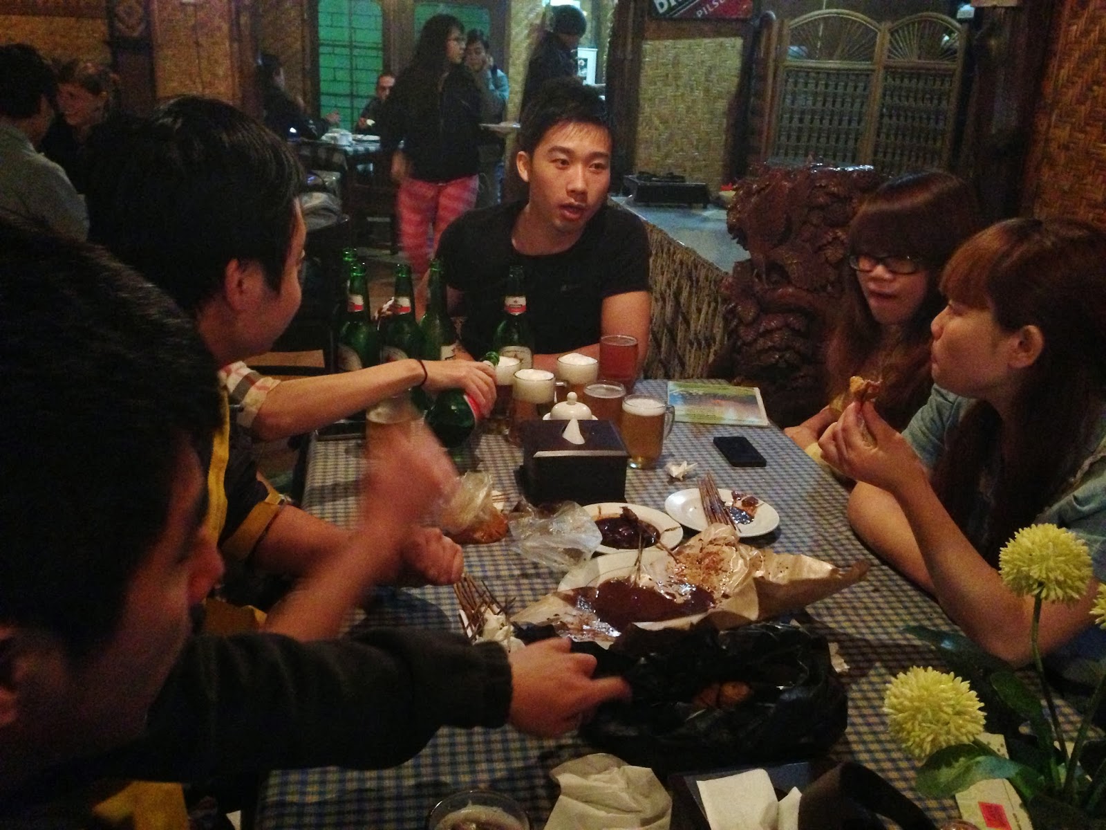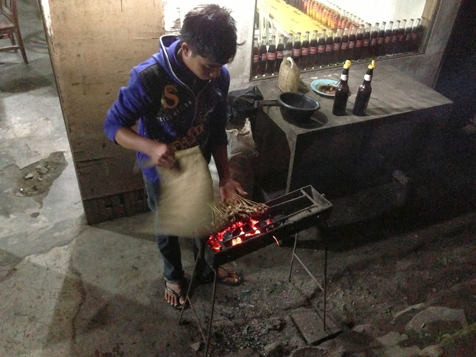 由于酒店做饭比较慢,我们刚才在山上逛,看到卖沙爹和豆腐的,大家都好想吃,于是我们就过去瞧瞧,那豆腐味道还真的不错,沙爹超便宜,拿了几十串一下就吃完了。回想那味,冬天里吃着烧烤,嘴里吹着烟的滋味,太美妙了。