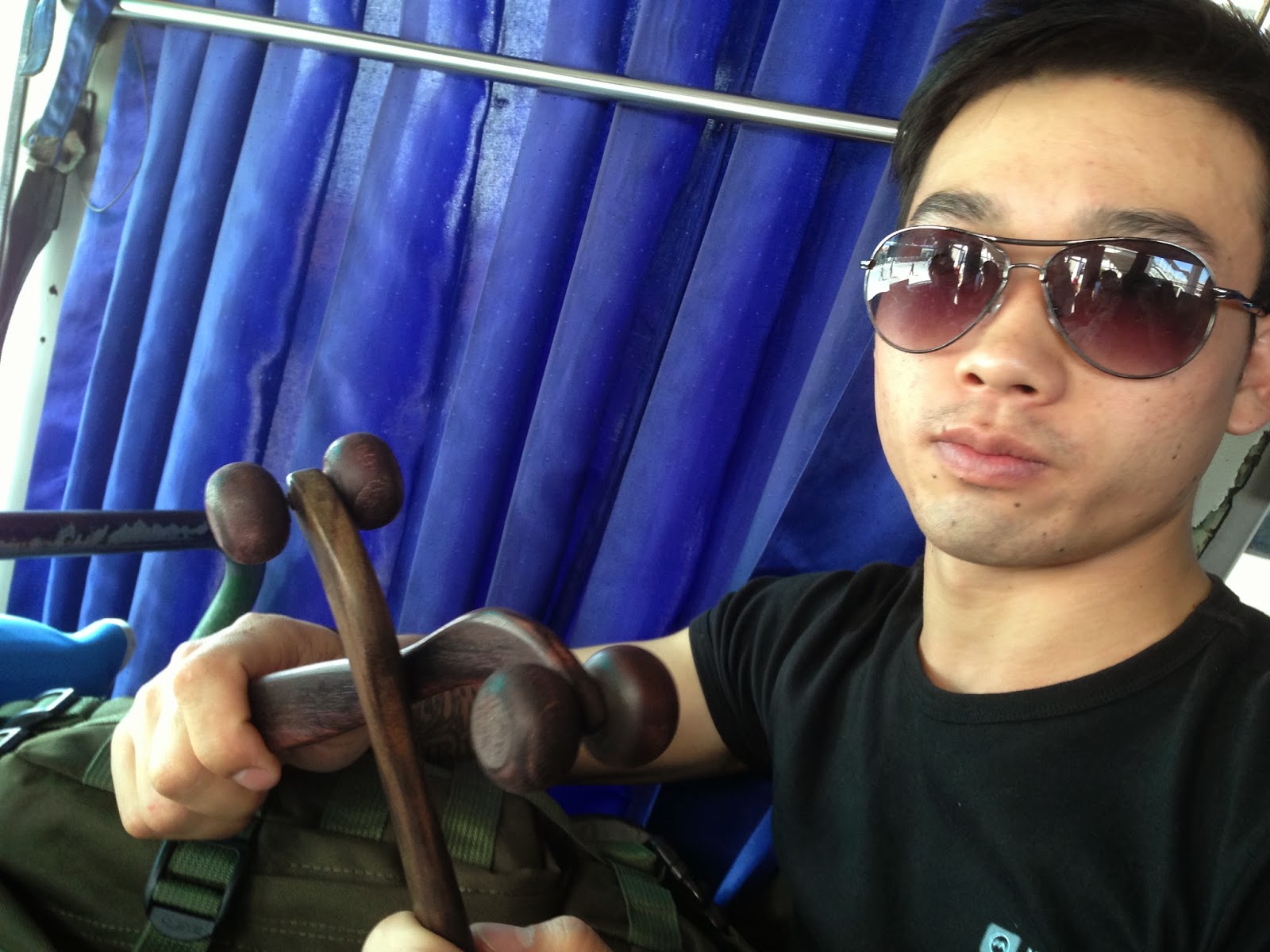 这是什么,像是拿来按摩的,哈哈哈,是跑上车的小贩拿来推销的,老七竟然拿来做道具摆pose了。。。。。可耻的是最后还不买。。。诶,可怜的小贩。。。。