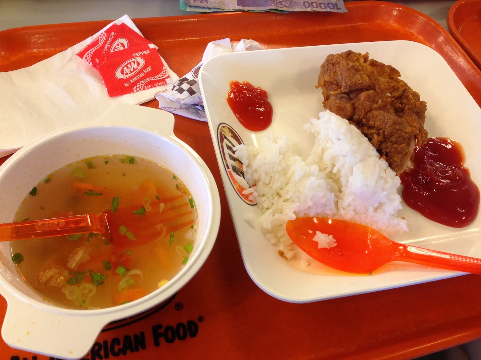 不得不说印尼那小机场,简直连中国的火车站都不如。。。。太小了。。。饥肠辘辘的我们就下了机场后找了家印尼的快餐店吃了饭,味道确实不咋的,但对于饥饿的我们来说已经很满足了