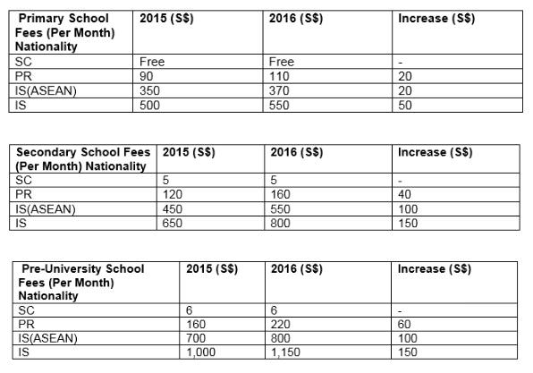 公民,PR, 外国人身份不同,费用不同。学费也一直在涨。看图。