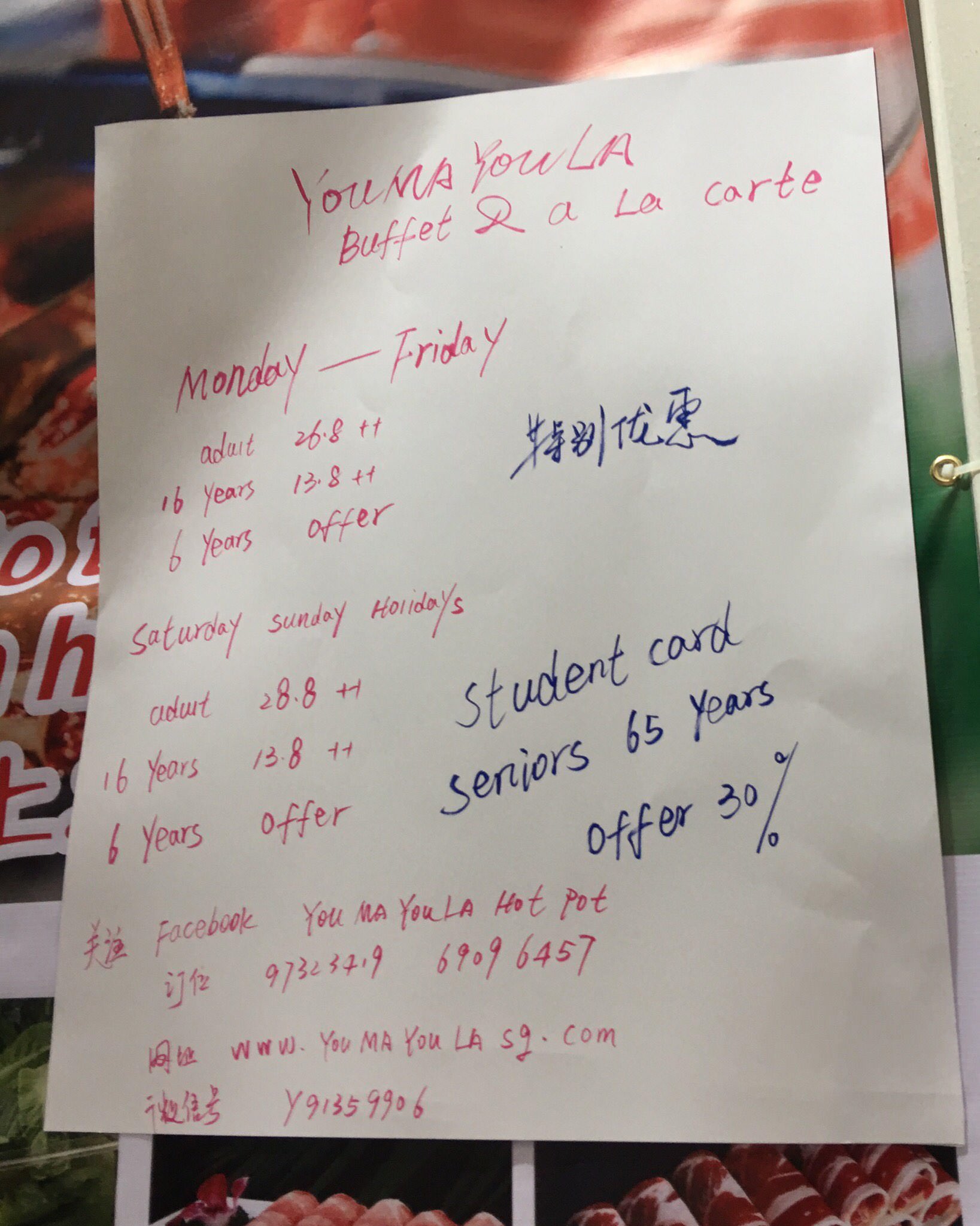 对了,昨天在火锅店门口看到写着学生和65岁以上的老人65折