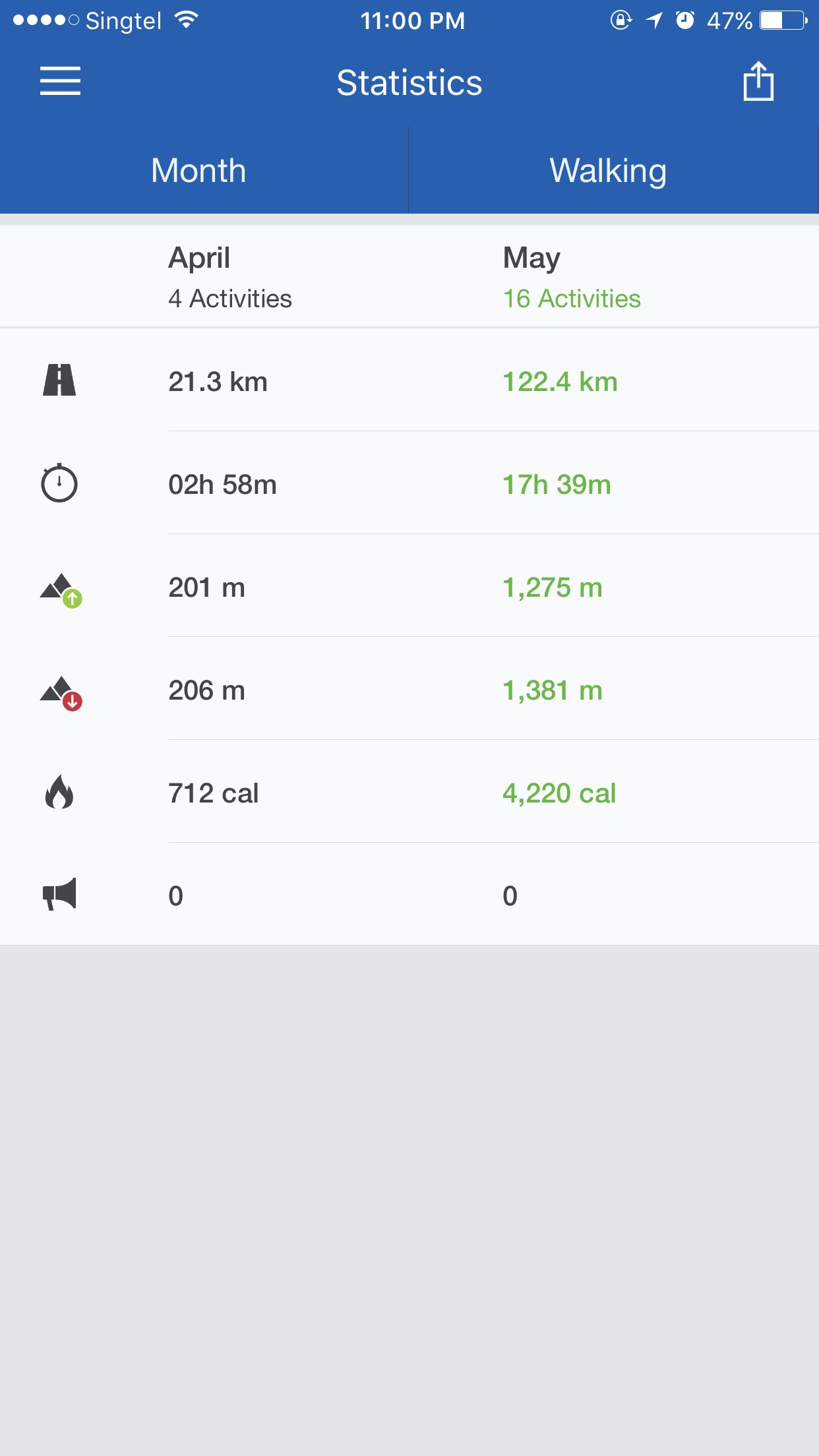 来上一下这个月锻炼的record我现在还是很有动力的。。。每天吃过晚餐后就准备去锻炼。。。