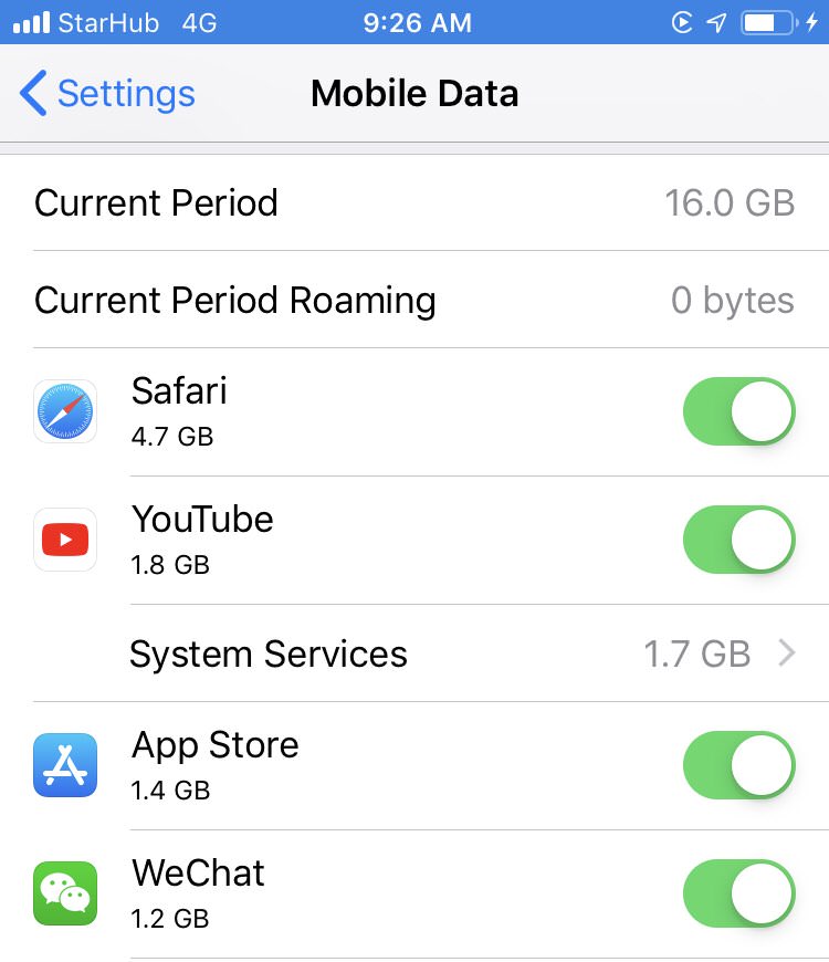 没换过手机,完全一样的用法,上下班路上看看书什么的没开过video,公司家里都Wi-Fi,反复检查过后台没跑什么费数据的程序