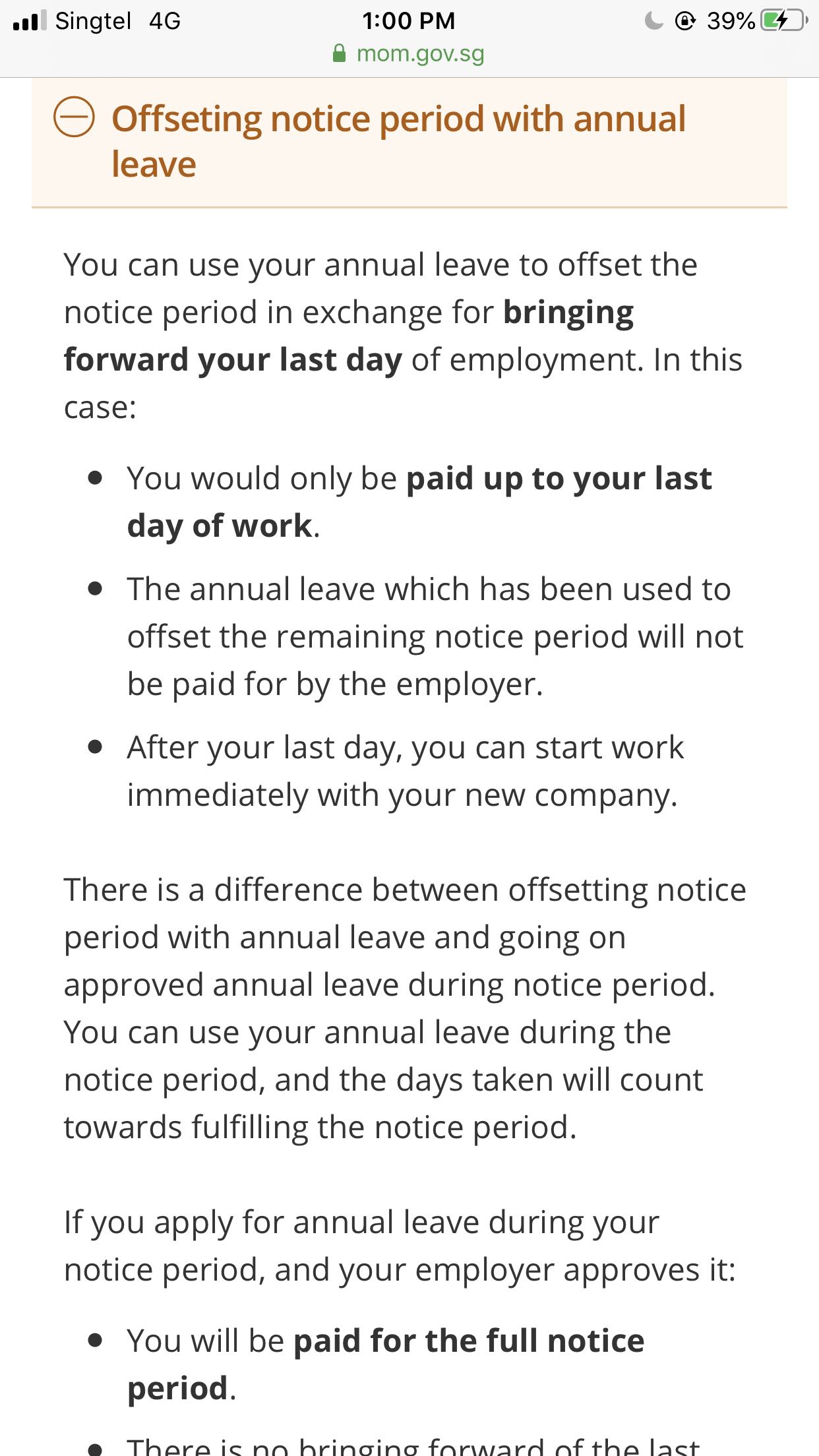 所以“用年假抵”的意思是:放弃休年假的权利,以换取比原定notice的last day提前相同工作日正式离开现在公司的自由。都已经离开现在公司了,当然就可以在第二天正式加入新公司啦。MOM表示用年假抵notice天数是离职者当然拥有的权力,公司不得不同意。注意,有薪年假被放弃了,本应体年假时领的薪水也一同放弃了,个人方面是有损失的,有诚意的新公司应该补偿。 -