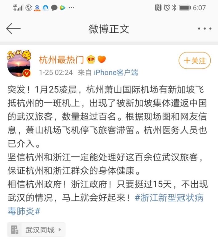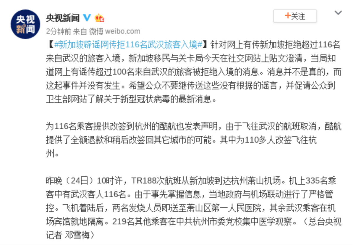 求证:新加坡遣返武汉来的游客?这……真的假的?