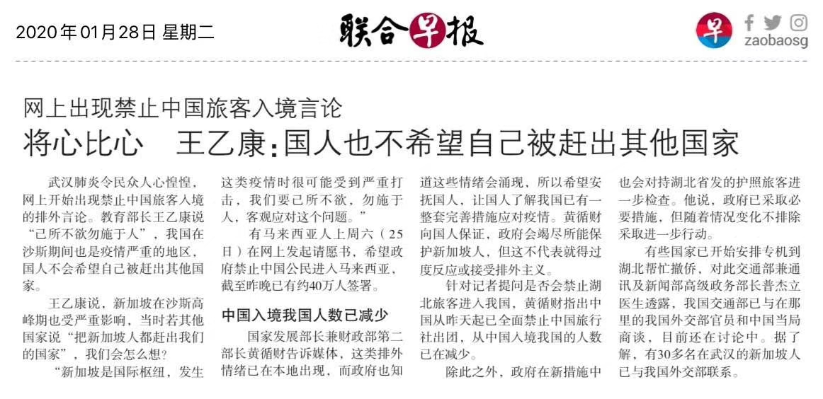 不可能?连一个中国的香港和澳门都禁止湖北旅客入境,新加坡为啥不可能?