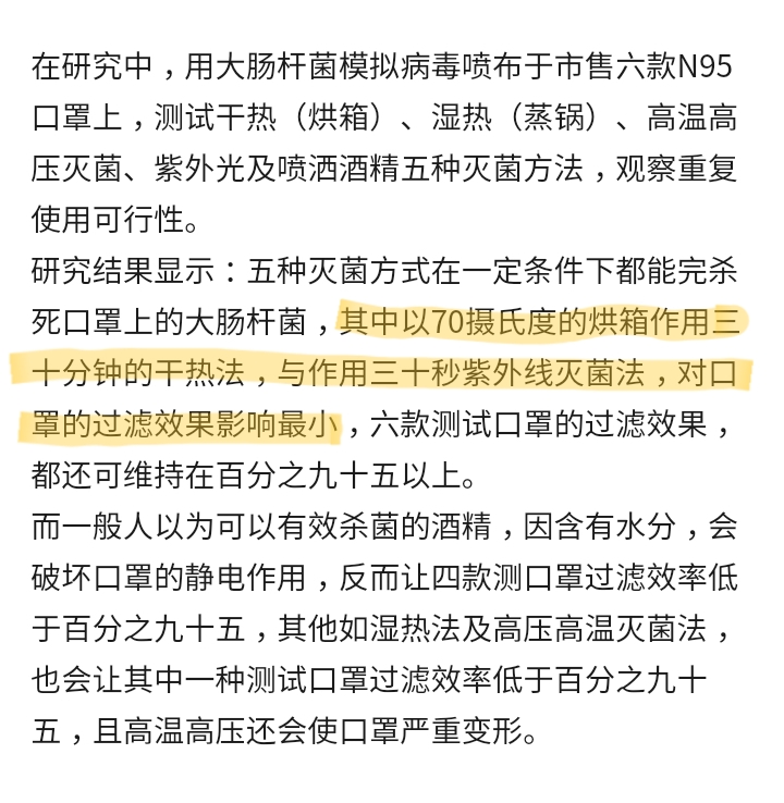 用烤箱,70度30分钟,口罩还能重复使用李兰娟院士:此冠状病毒,56度30分钟就死了。
