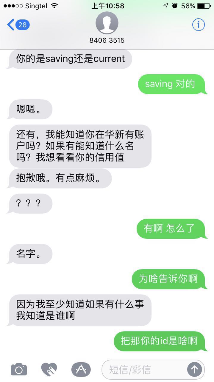 1. 骗子利用的是很多版友在新加坡呆久了警惕性比较低的空子,也是利用了狮城帮上用户之间信任度比较高的空子。新加坡政府一直宣传,低犯罪率不是无犯罪。狮城帮论坛无法一一甄别发布在论坛上的信息,而且此骗子一直在更换微信号和电话号码,需要版友们自己提高警惕。