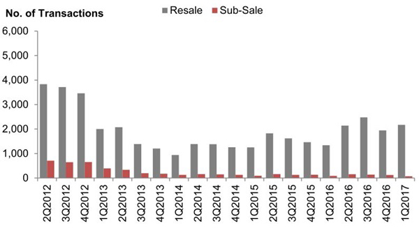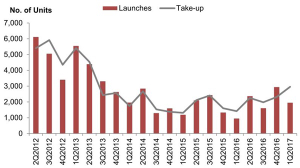 According to URA, as of the end of 1st quarter, there are 46,016 units (including ECs) in the supply pipeline and 18,870 units remain unsold. From now till end of 2017, there are 14,242 units waiting for TOP.
