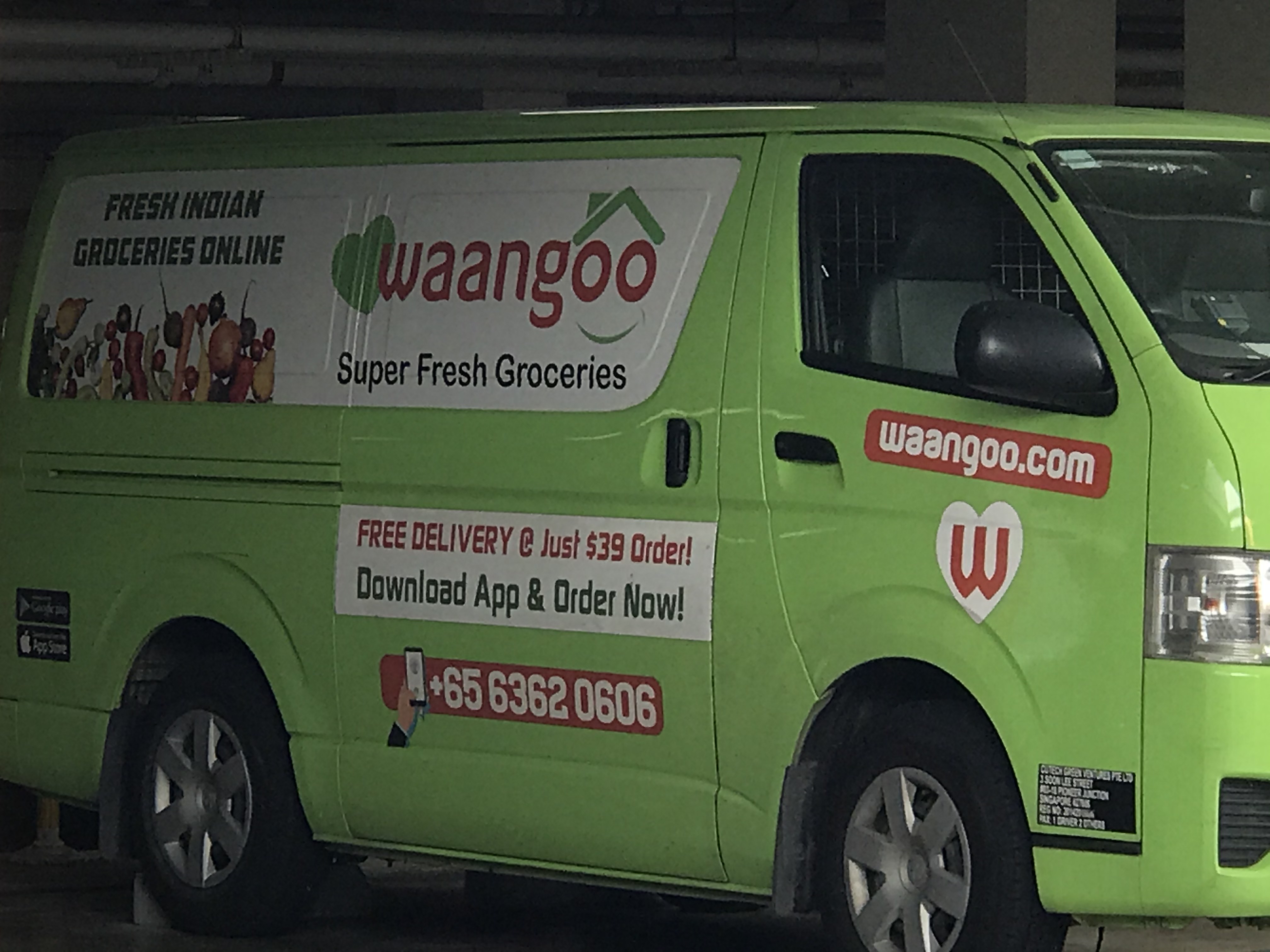 刚楼下车库看到一家印度新鲜蔬果的送货上门。看图