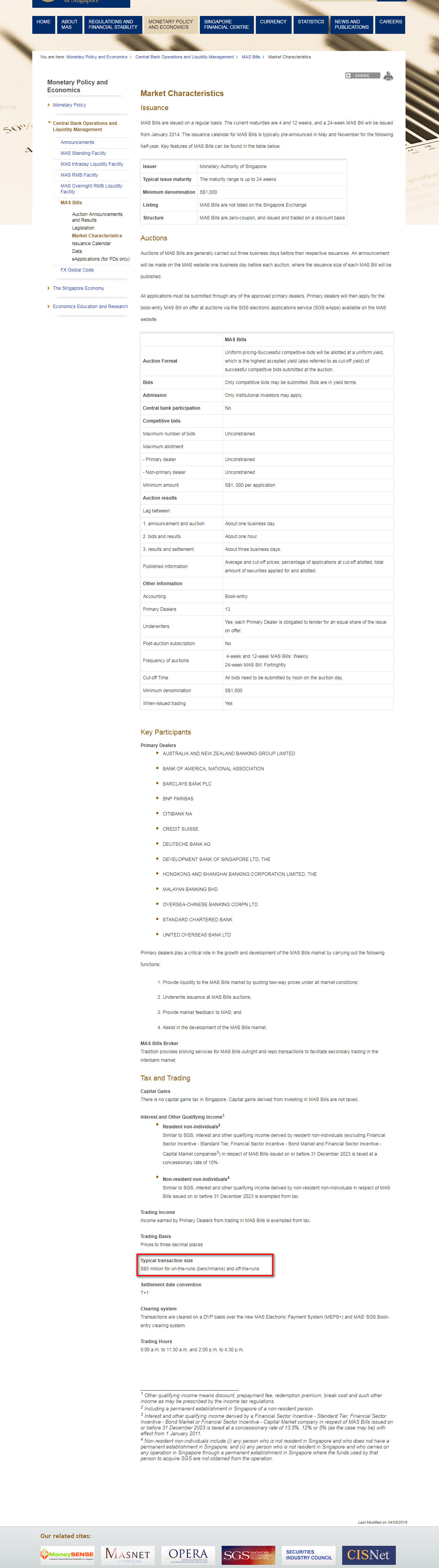 MAS 网站写着 MAS Bill typical transaction size is S$5 millions.