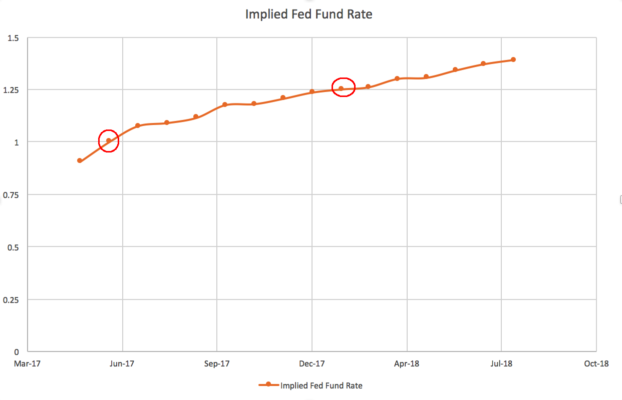 目前市场预料6月加息25点,2018年1月前加息25点。再下一次25点尚未预见。有可能或大有可能6月或稍后加25点后,减息/QE会慢慢发酵。